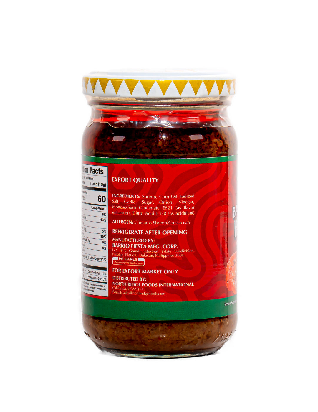 Barrio Fiesta Bagoong (Regular) is a classic Filipino shrimp paste known for its rich, savory, and slightly sweet flavor. Made from premium fermented shrimp and carefully seasoned to perfection, it’s the perfect condiment for kare-kare, green mango, and other traditional Filipino dishes.