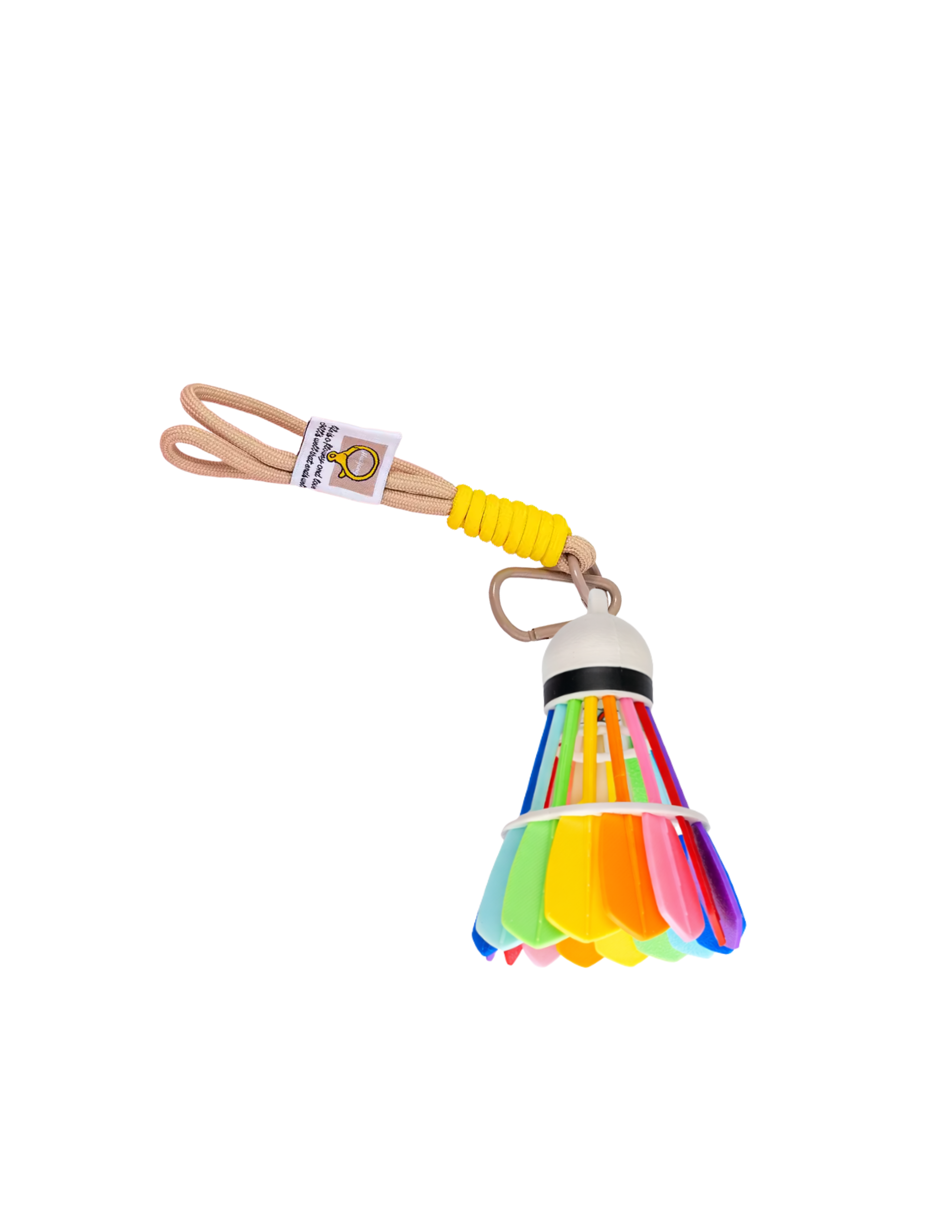More than just a keychain, it comes with a high-quality, earth-toned braided rope handle and a durable carabiner clip, allowing you to easily secure it to your backpack, gym bag, or luggage. The combination of the vibrant rainbow "feathers" and the rugged industrial-style strap makes it a perfect blend of modern tech and artisan fashion. Lightweight, durable, and eye-catching—it's the perfect gift for sports fans and trendsetters alike.