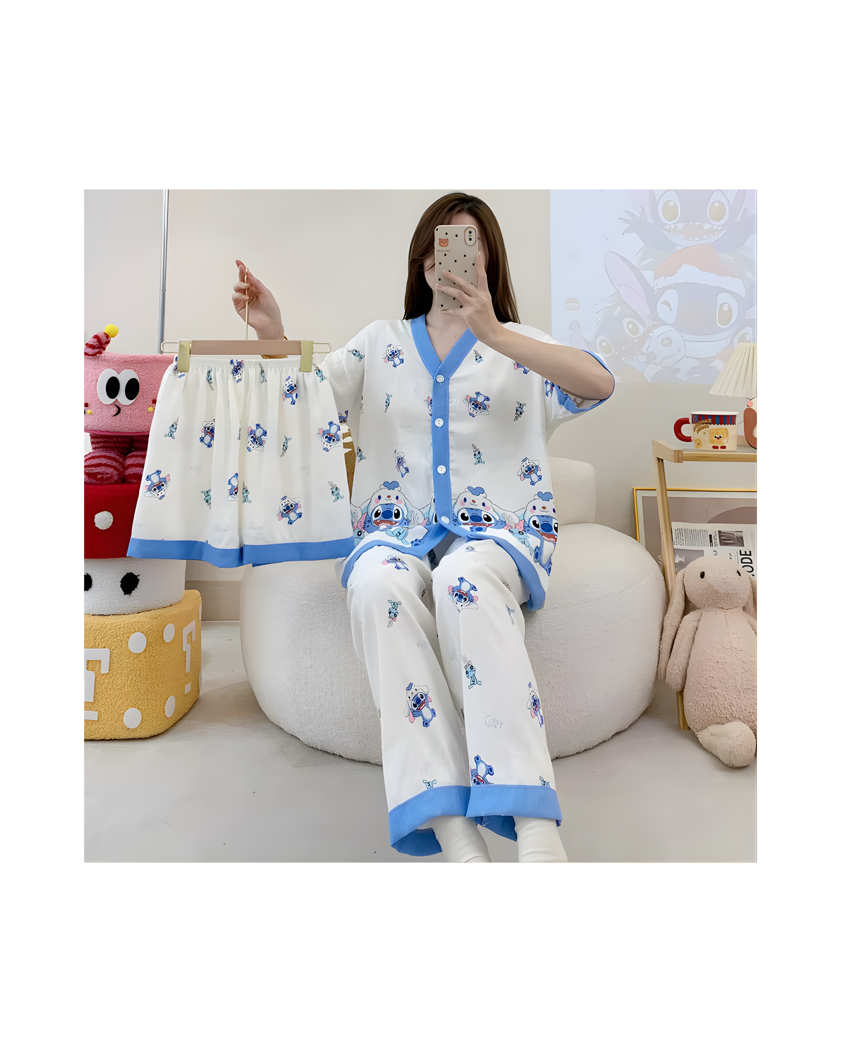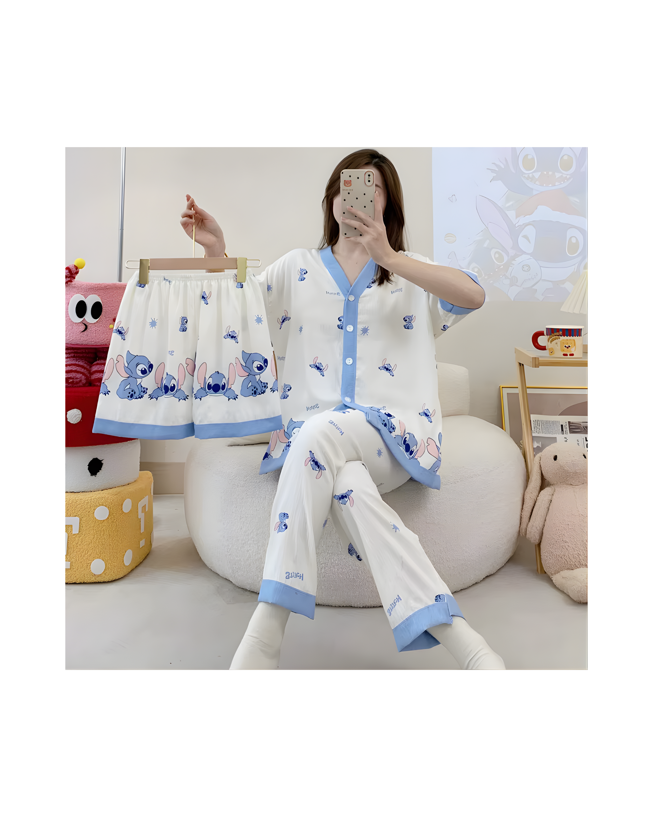 3-Piece Women’s Pajama Set – Cute Cartoon Design (Top, Shorts & Pajama)