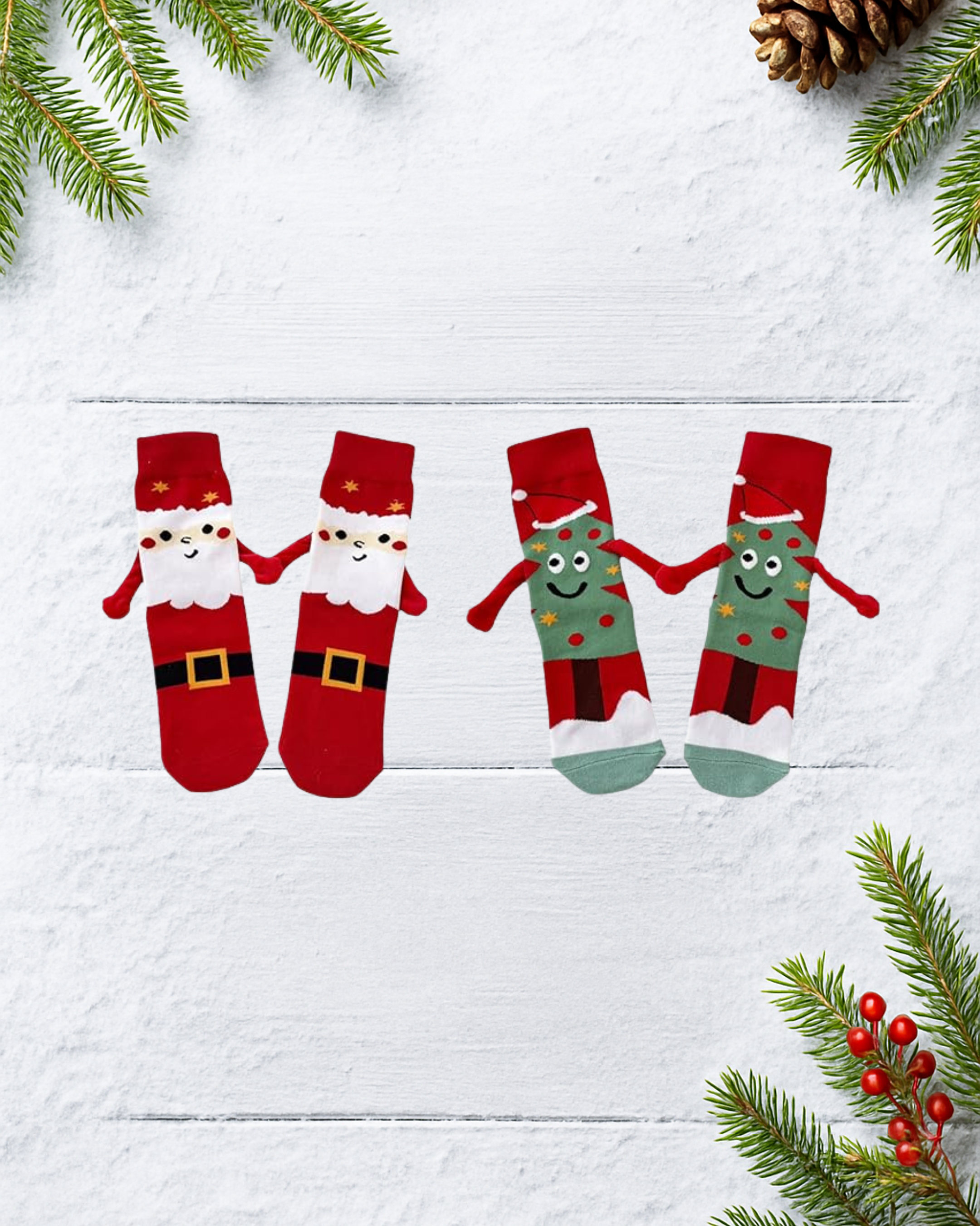 Festive 3D Christmas socks sold as 2-pair sets. Includes matching Santa and Christmas tree designs.