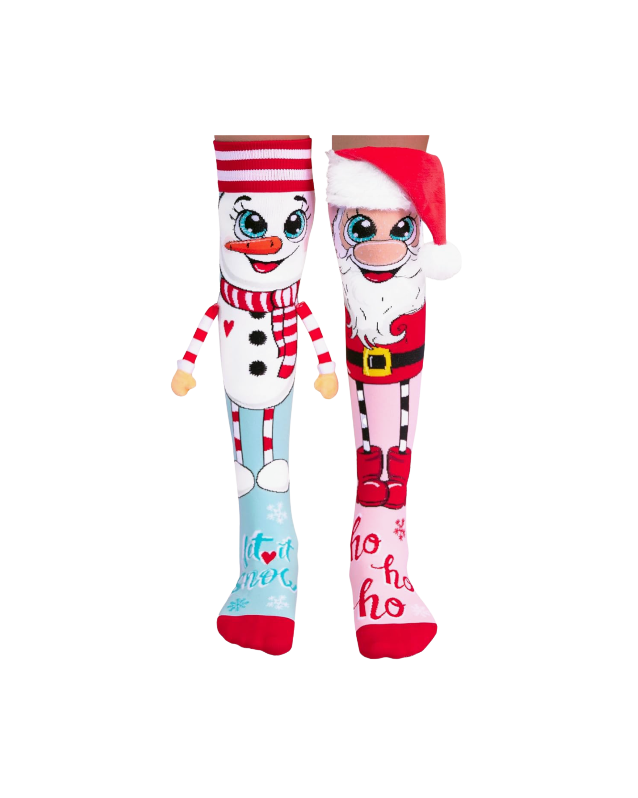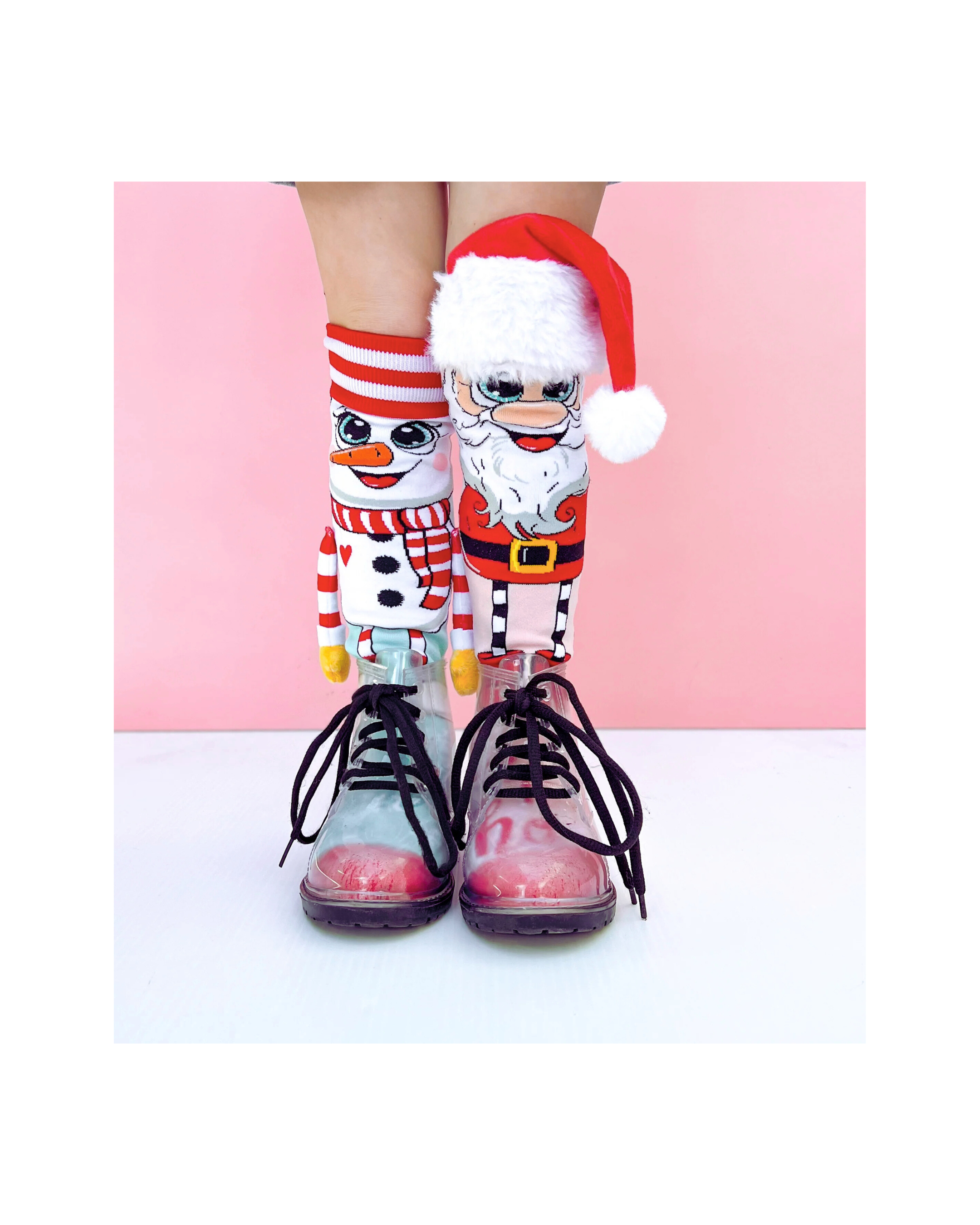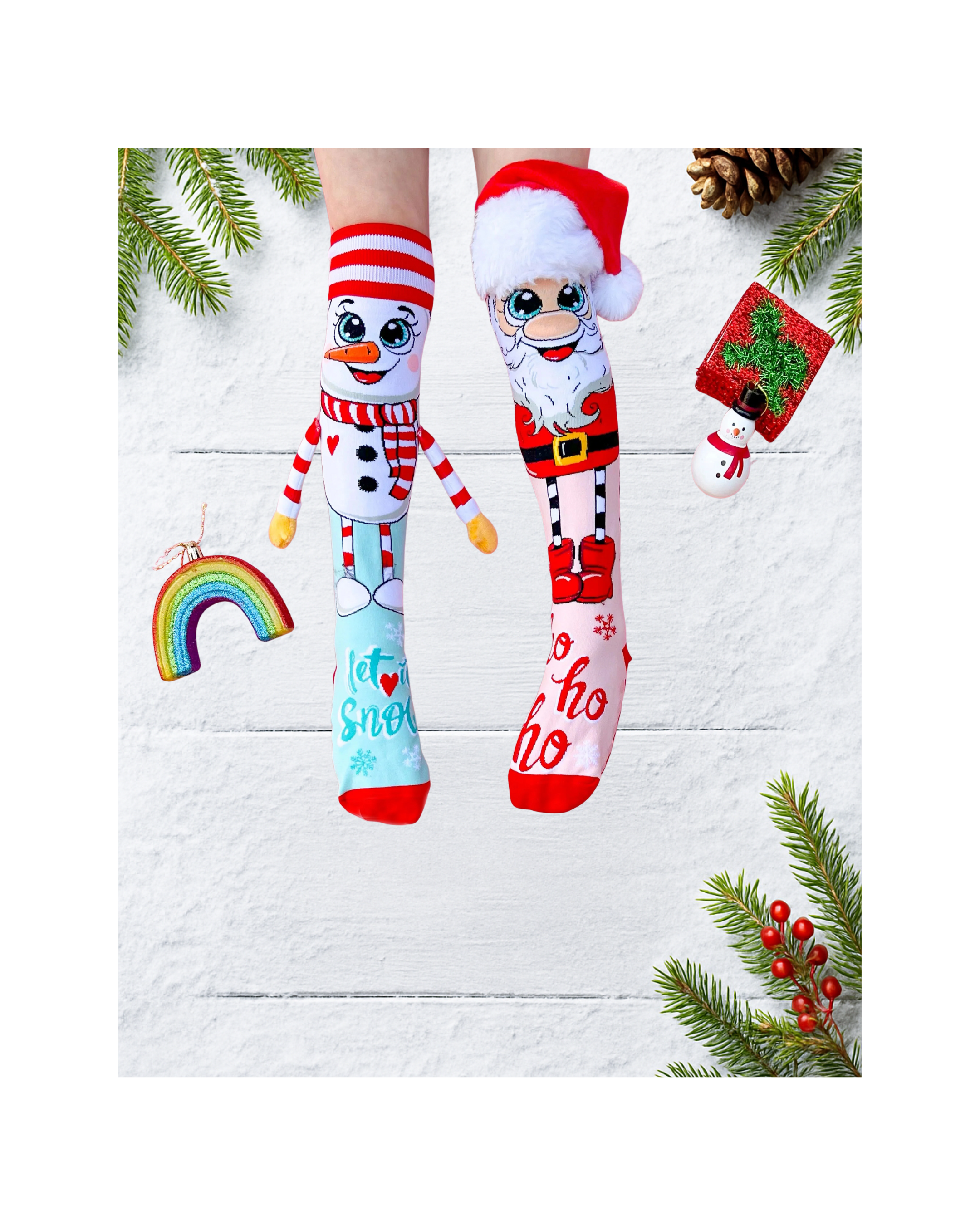 Colorful kids’ crew socks with 3D Santa and Snowman designs. Fun, cozy, and perfect for the holidays