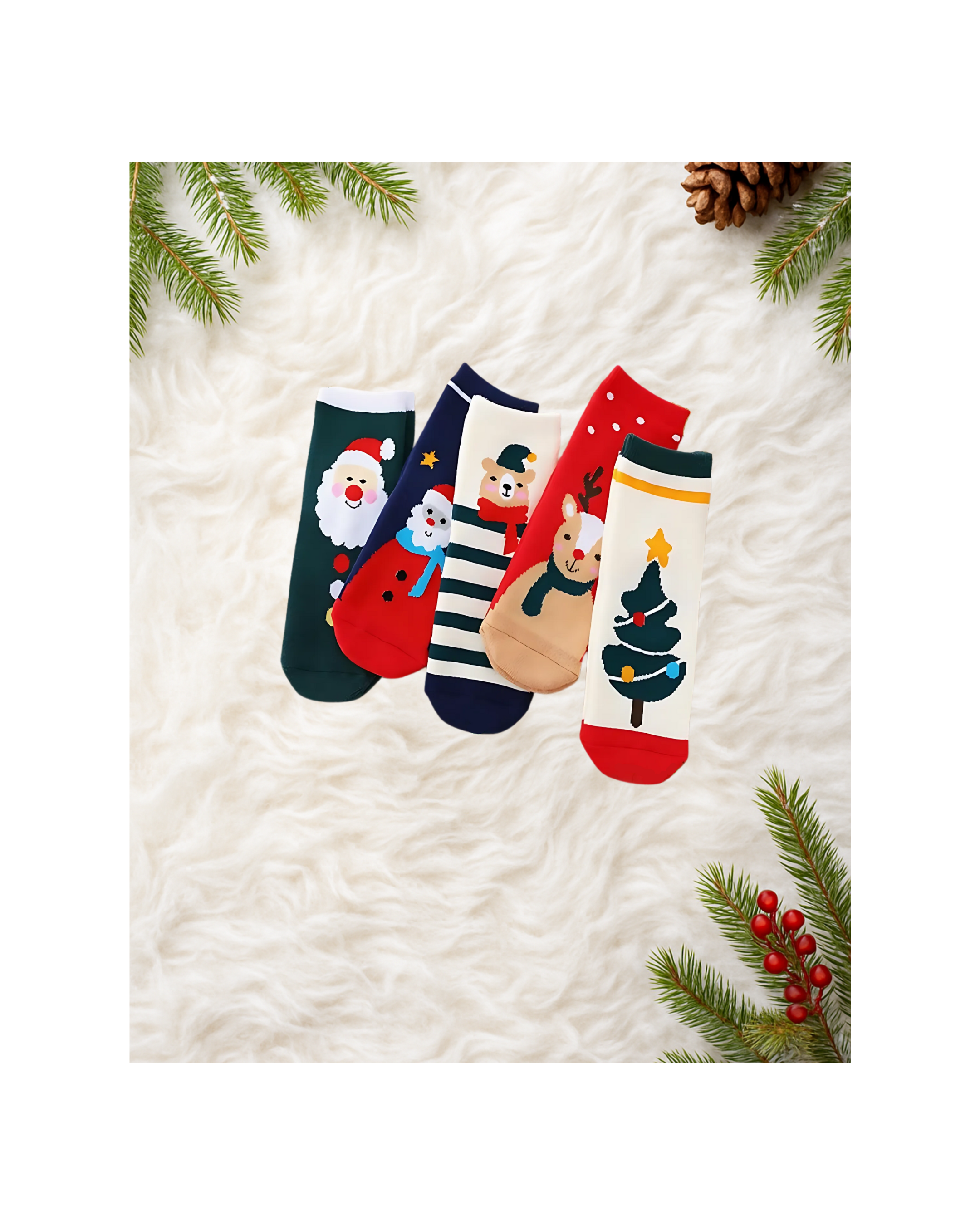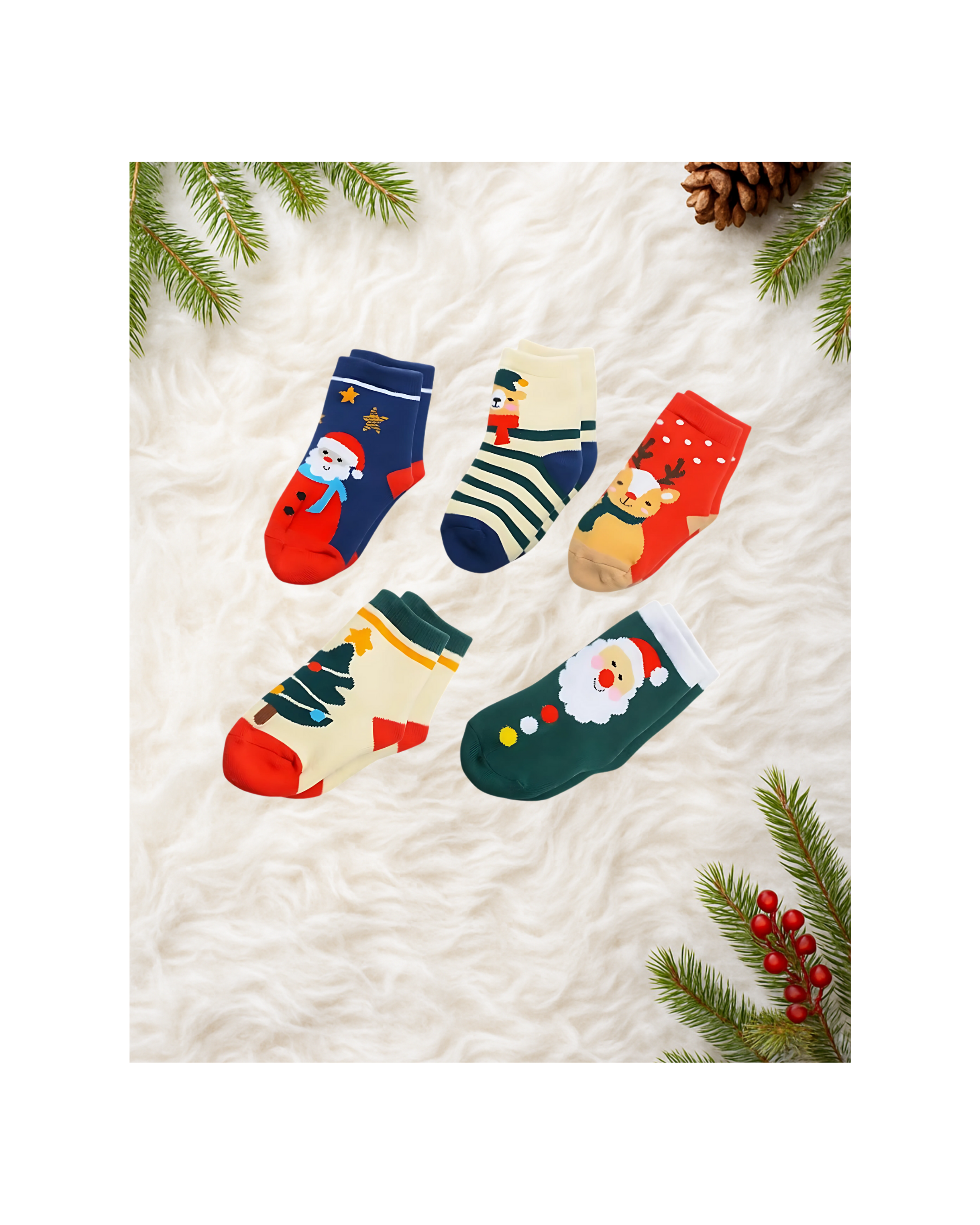 Christmas Crew Socks for Kids – 5 Pairs, 4 Sizes Available