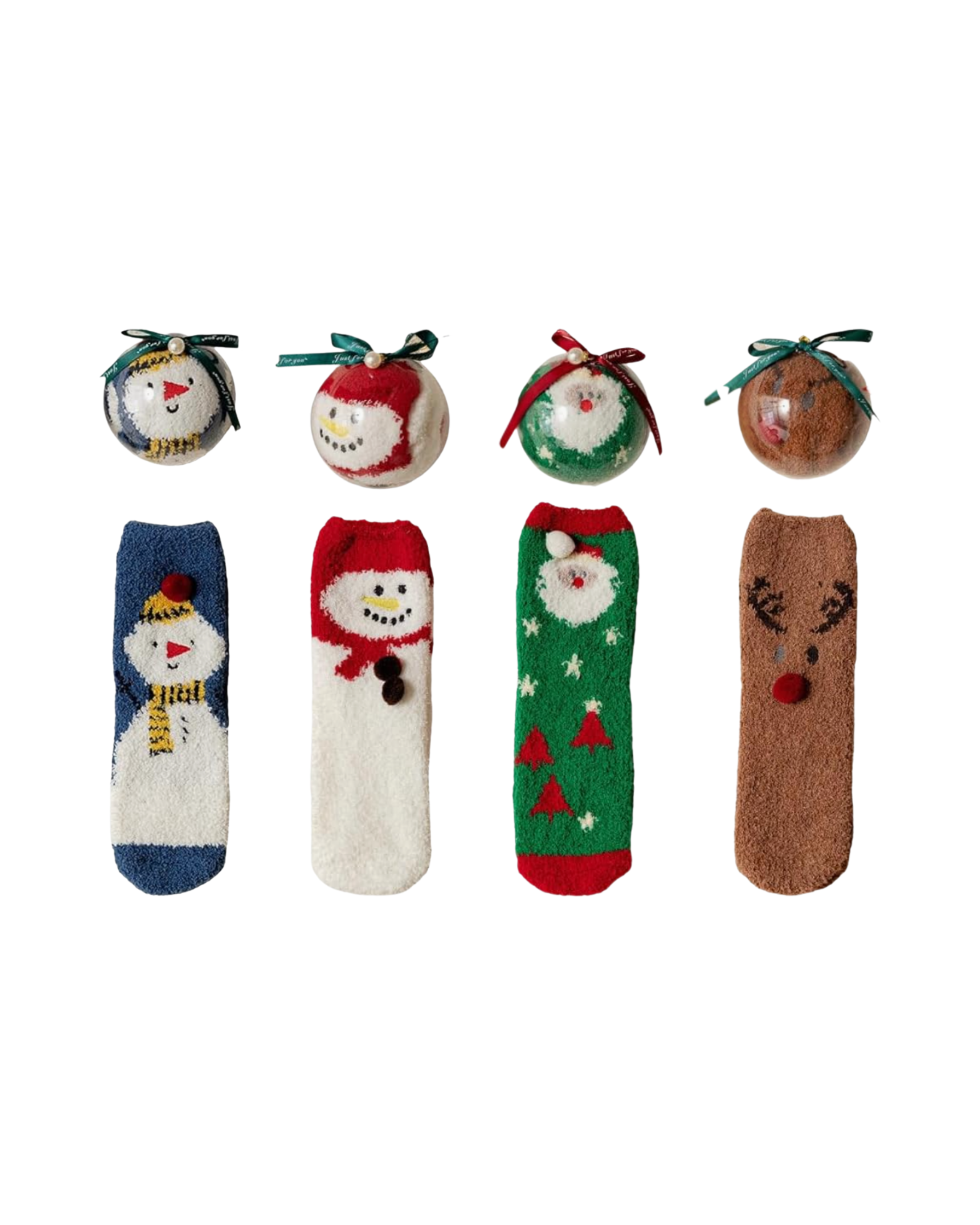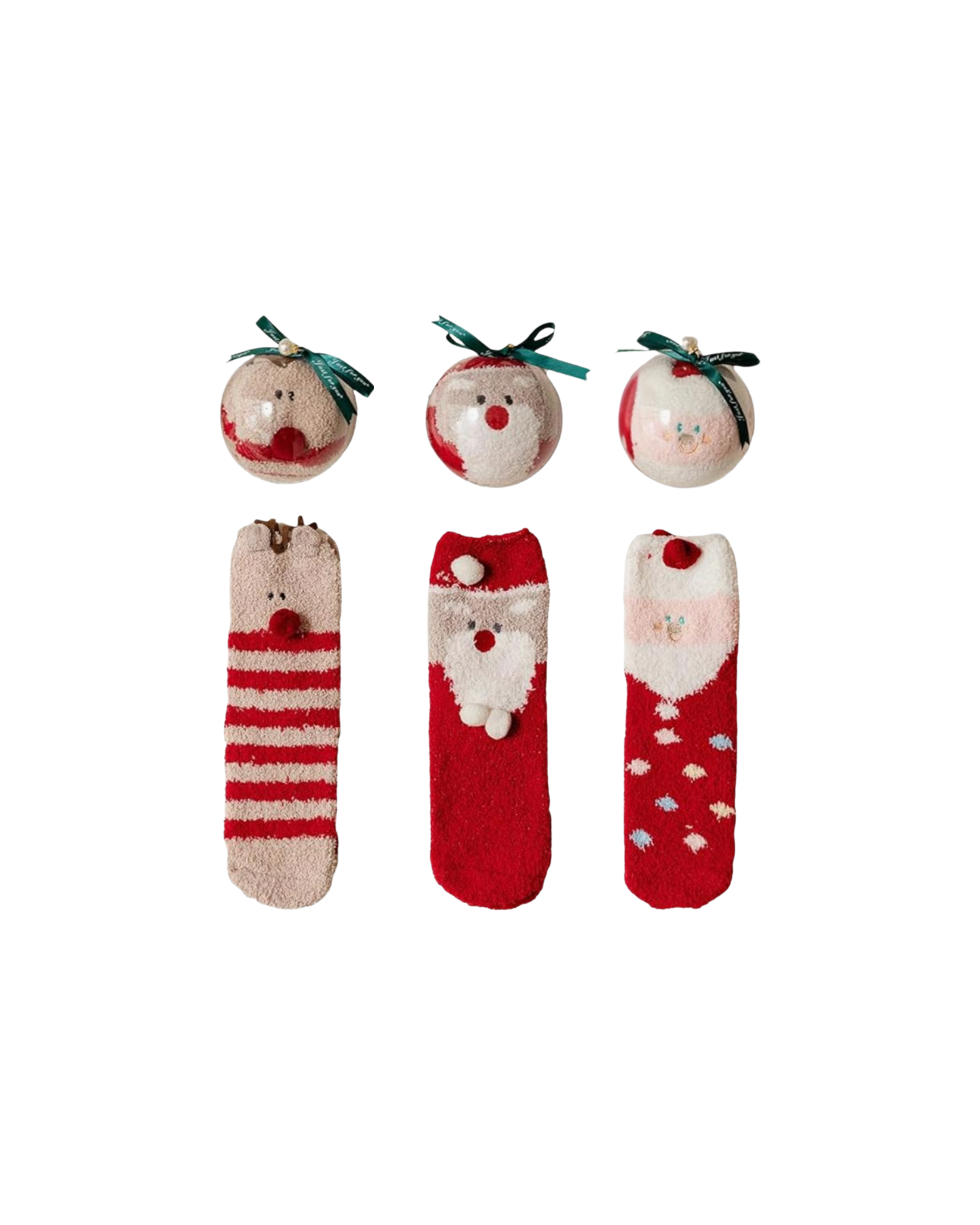 Each clear ornament ball hides a soft, cozy pair of Christmas-themed socks — just open the ball to reveal the surprise inside. Designs include snowman, Santa, reindeer, Christmas trees, and more festive patterns. Hang them on your tree, use them as stocking stuffers, or give them as unique and adorable gifts. A cute collectible holiday treat for all ages!