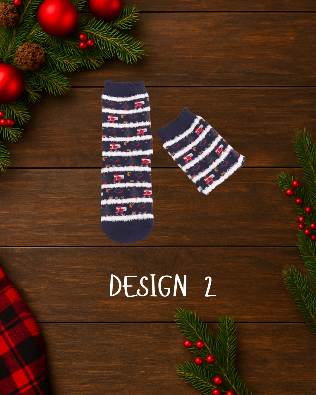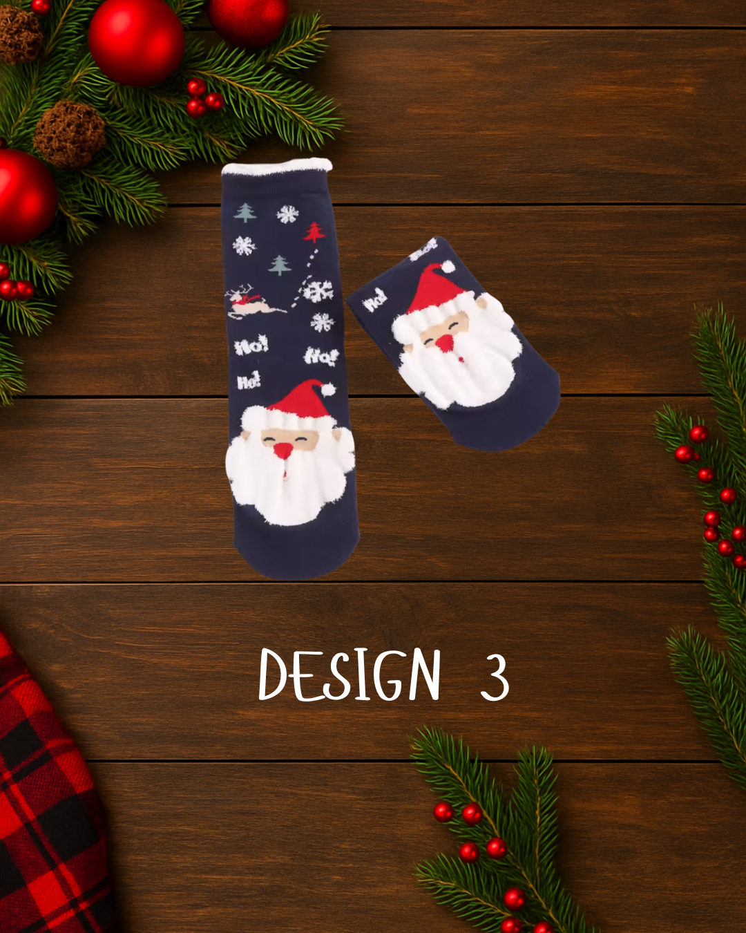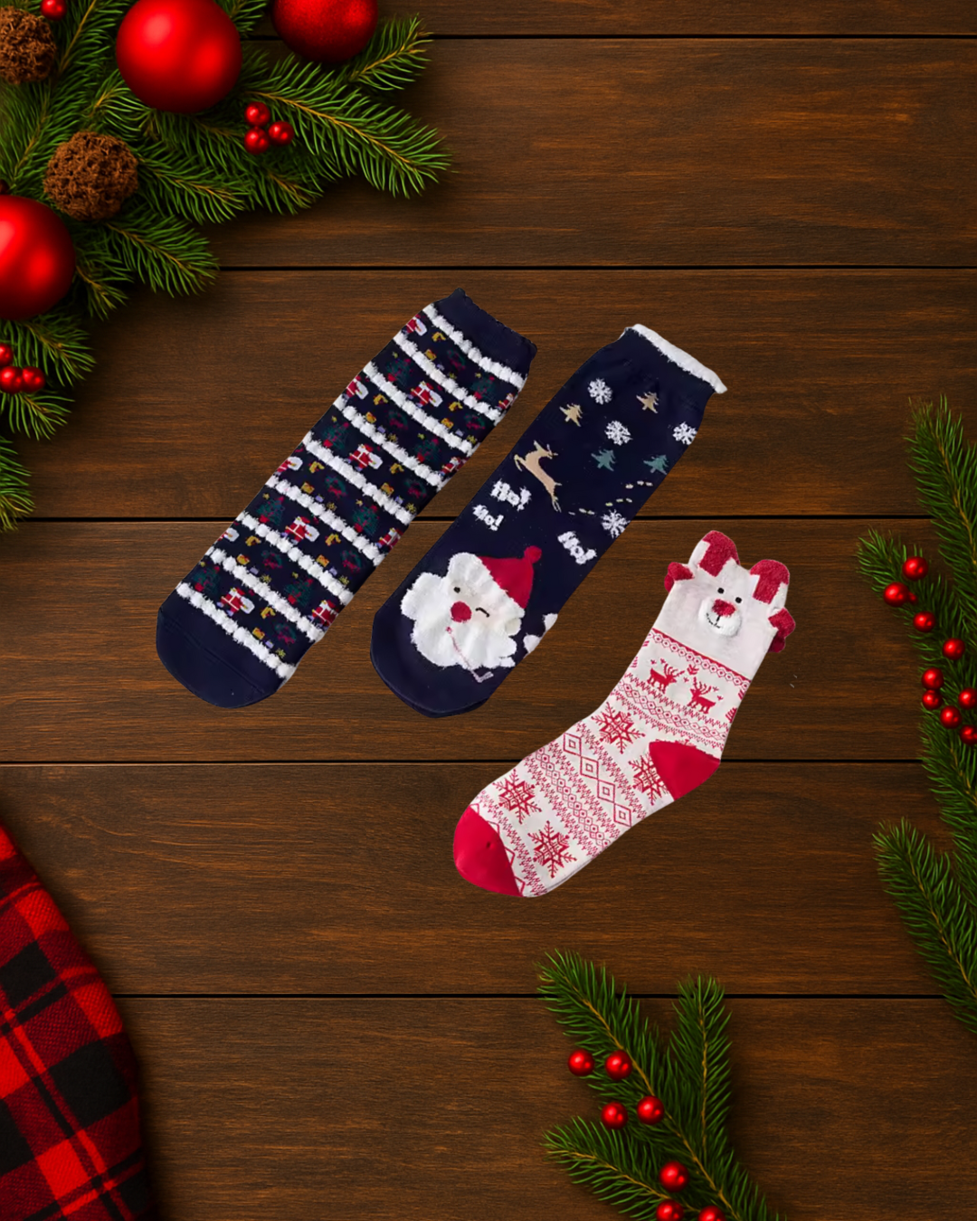 Festive and warm socks with holiday designs, perfect for Christmas lounging or gifting.