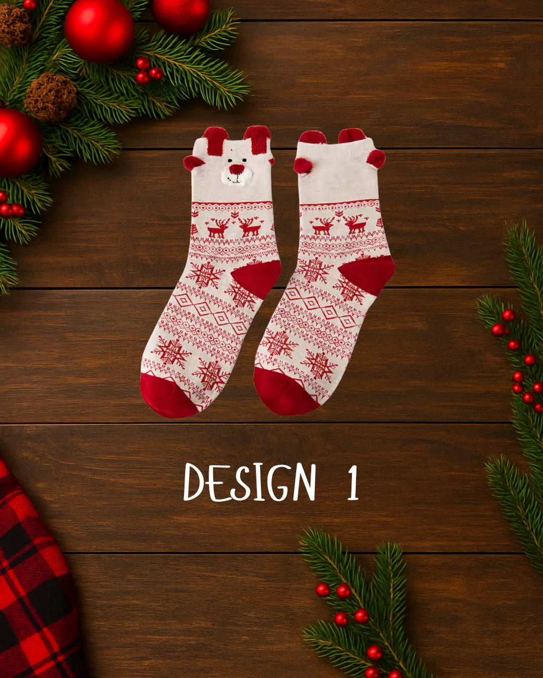 Christmas Themed Cozy Socks – 1 Pair, One Size Fits All