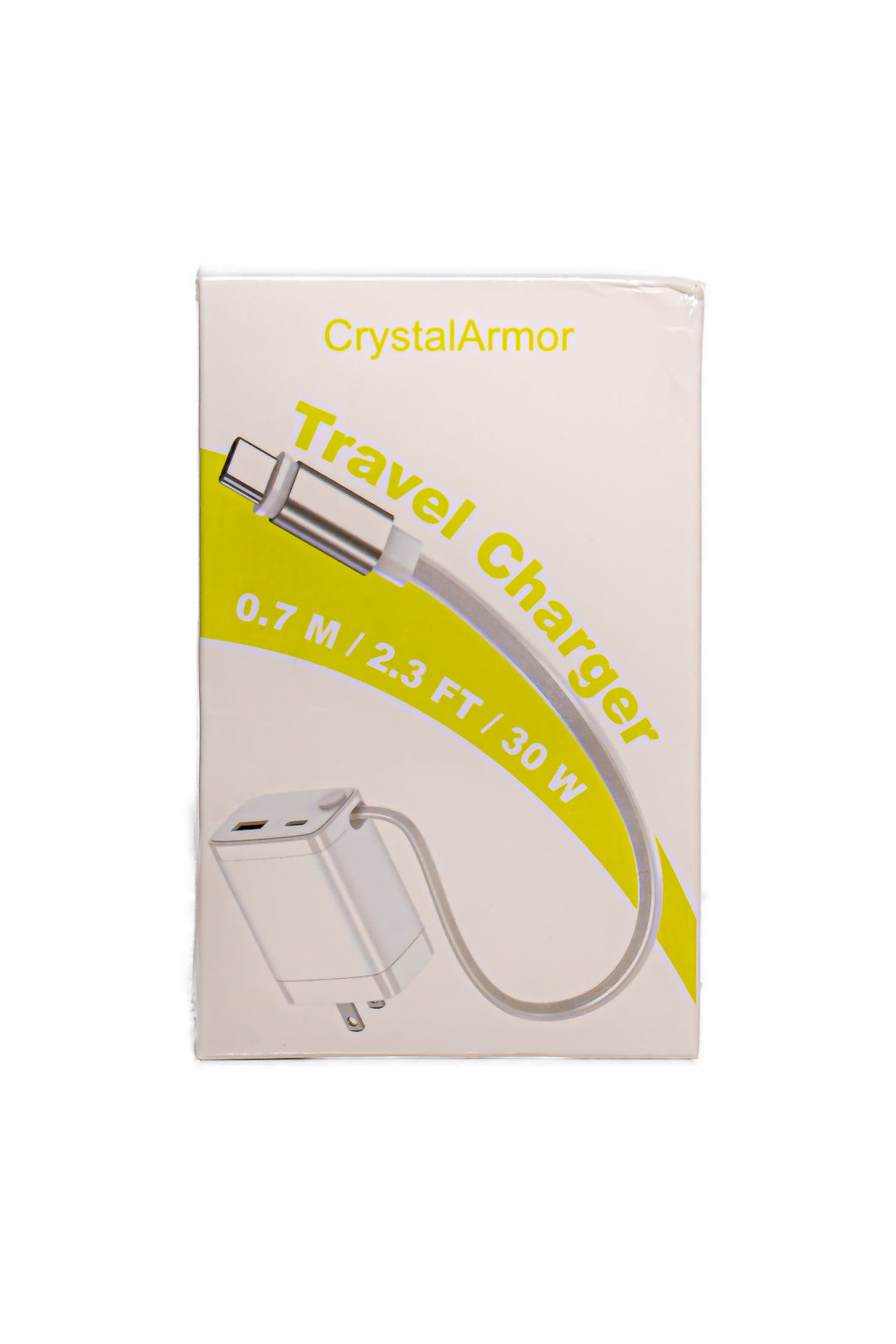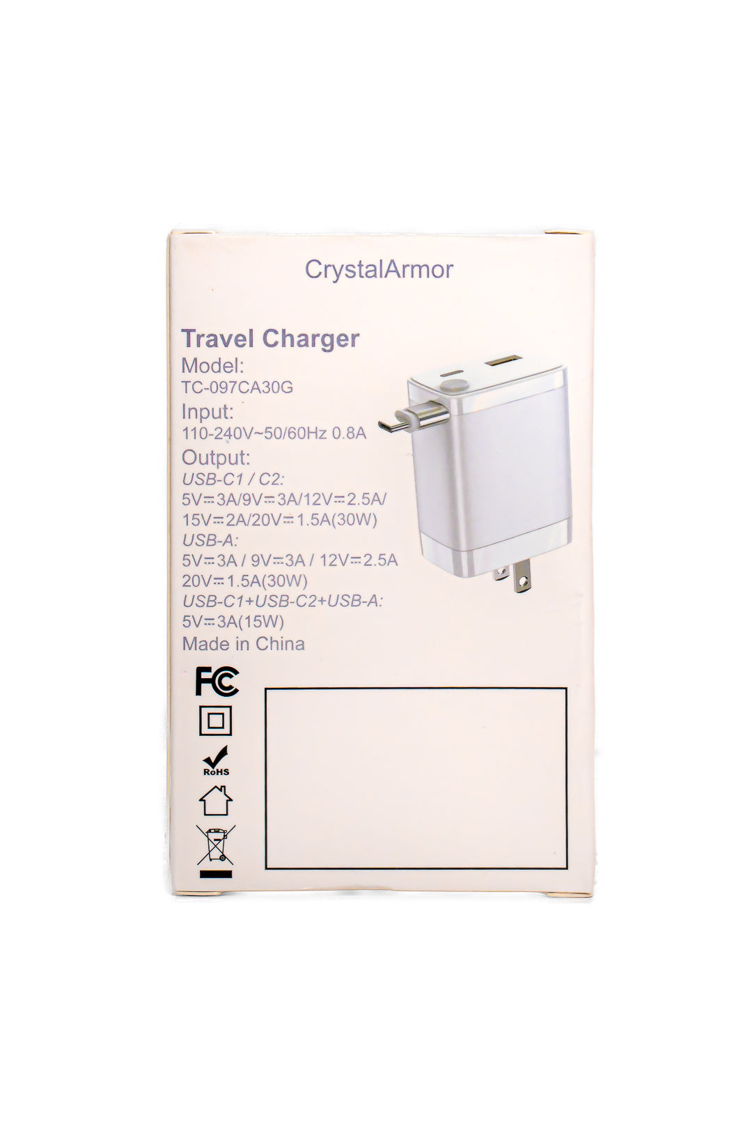 CrystalArmor Travel Charger – 30W, Dual USB-C + USB-A Output