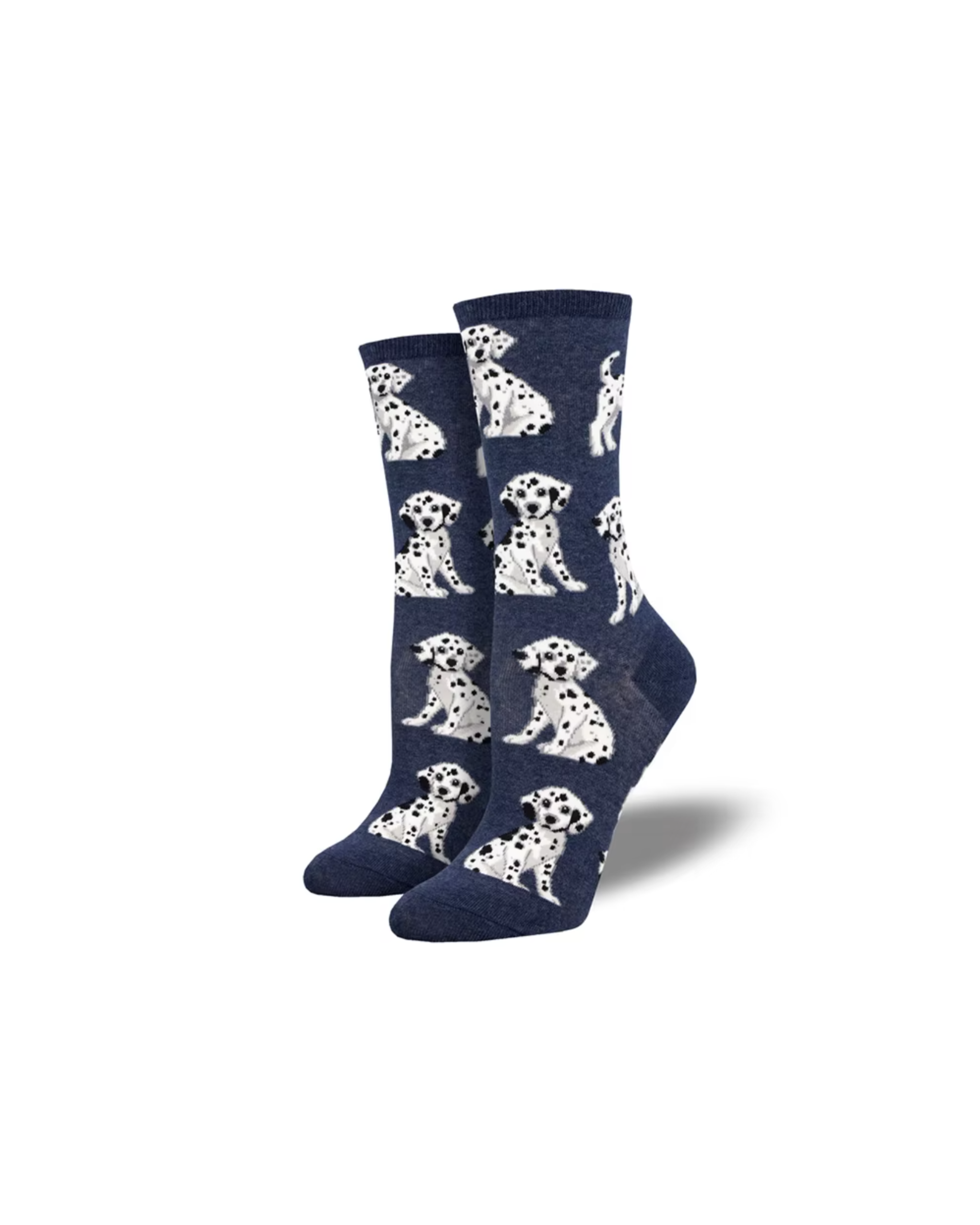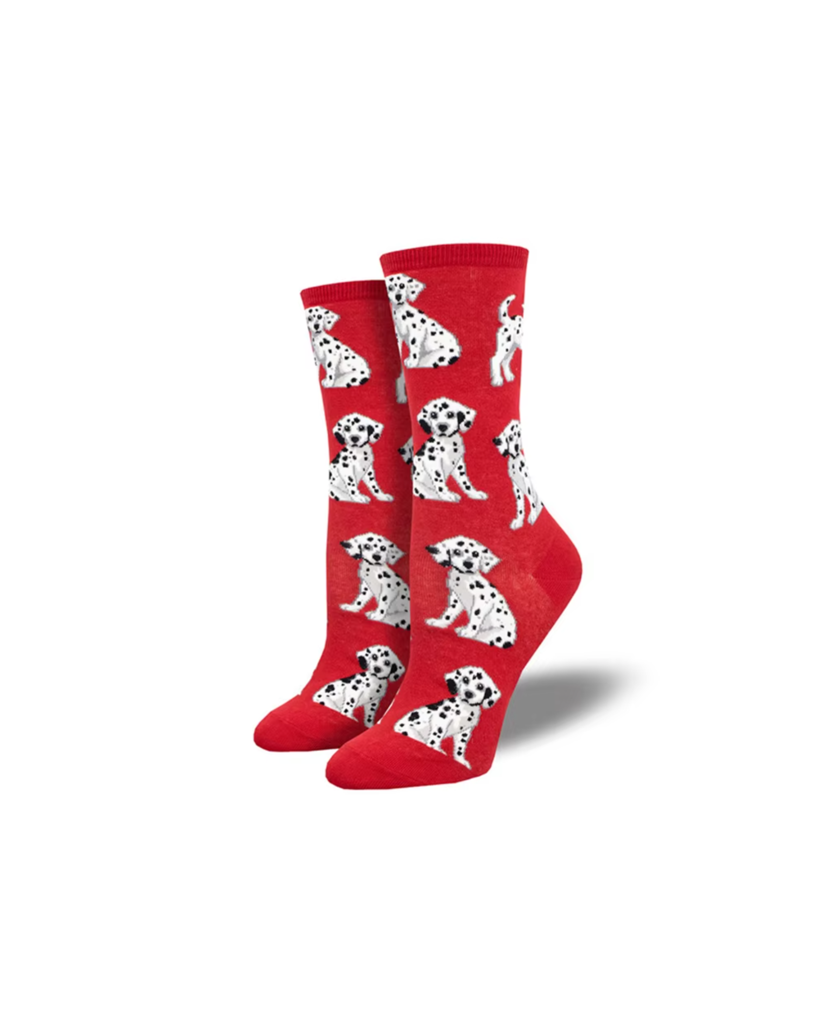 Soft crew socks with adorable Dalmatian dog print for everyday wear.
