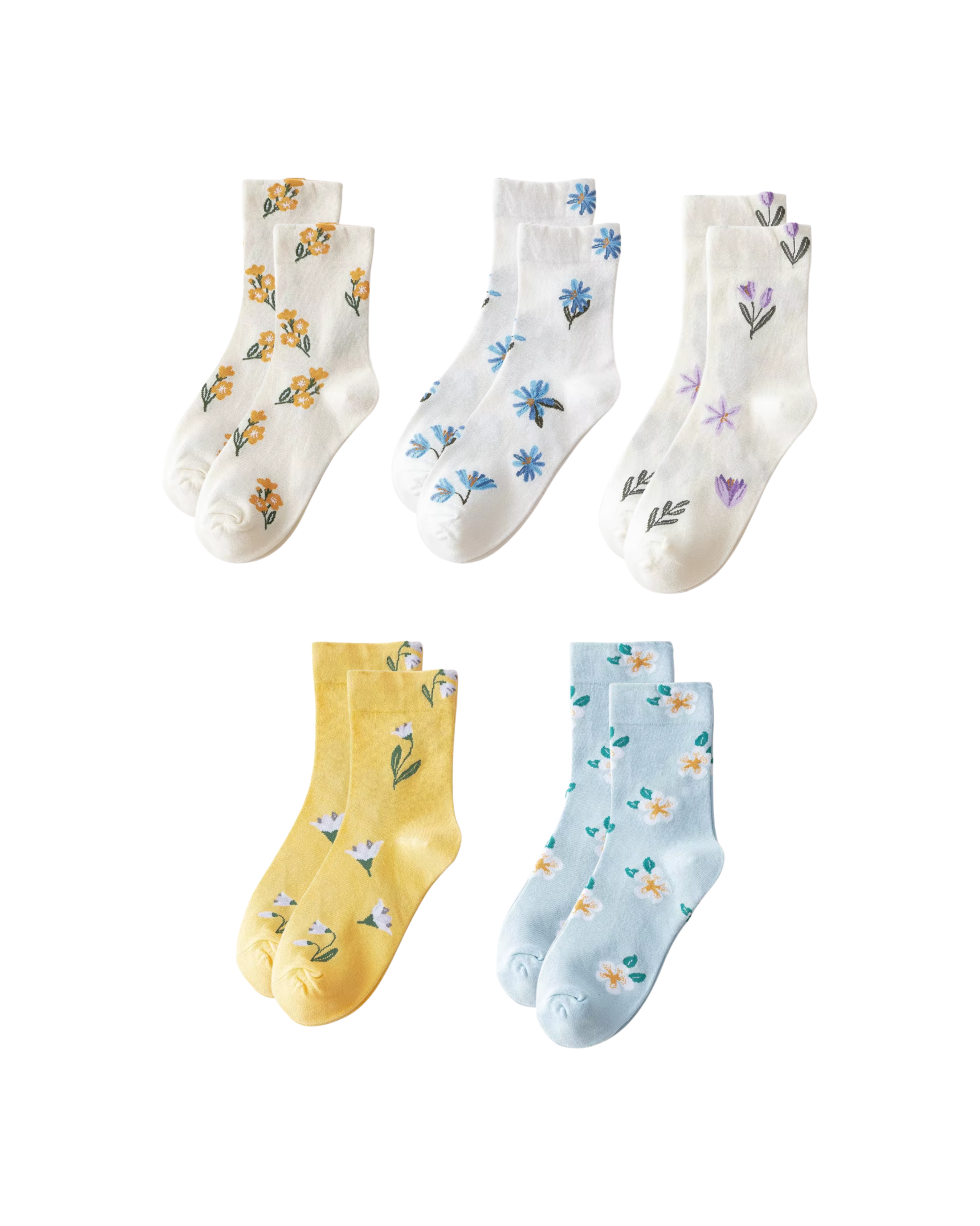 Cute Floral Pattern Crew Socks – 5 Pairs Set