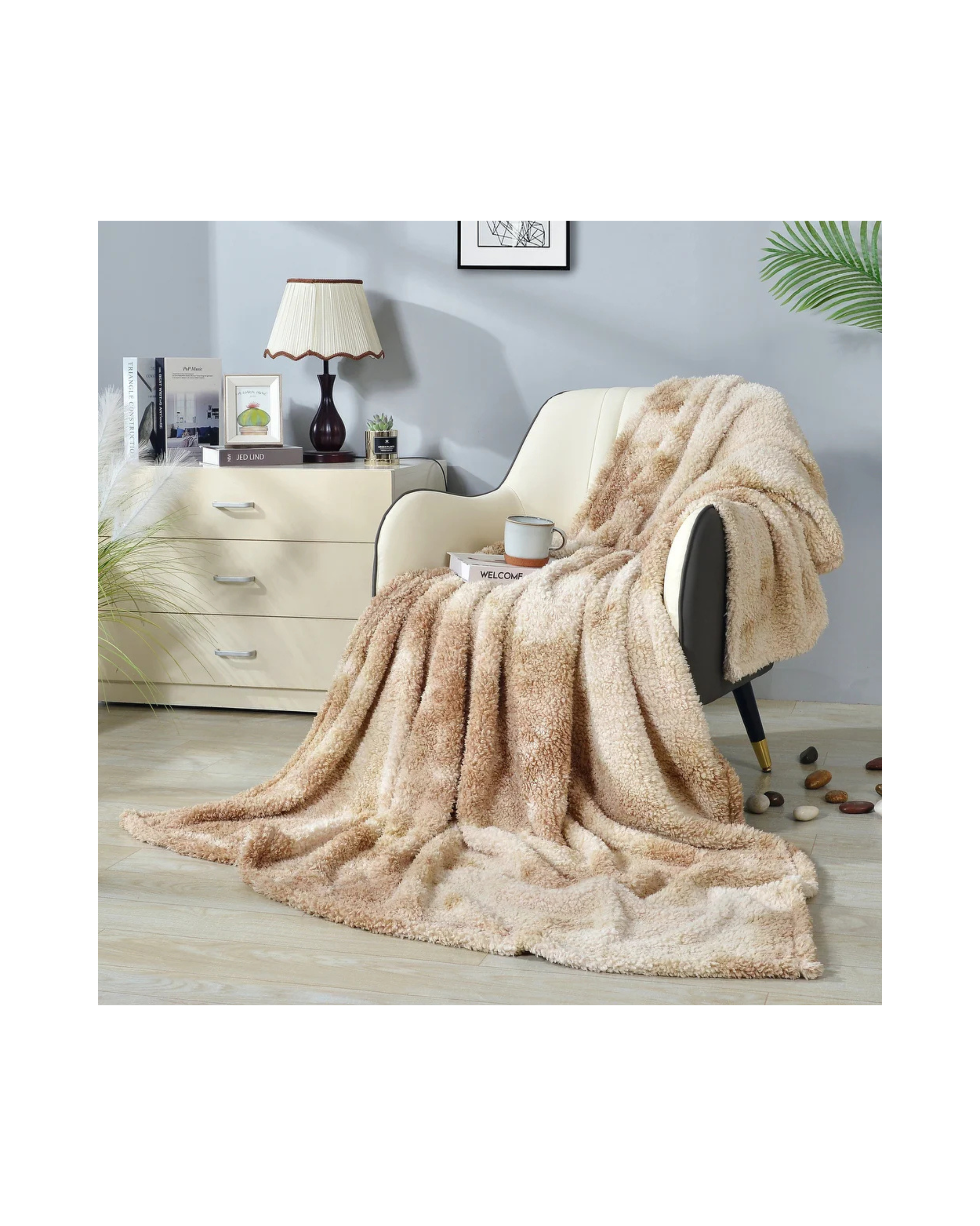 The Beige Queen Size (88 x 90 in) design offers a timeless neutral tone that complements any interior style — from minimalist to classic. Lightweight yet warm, it’s ideal for all seasons, whether you’re relaxing on the couch, reading in bed, or adding a touch of elegance to your living room décor.