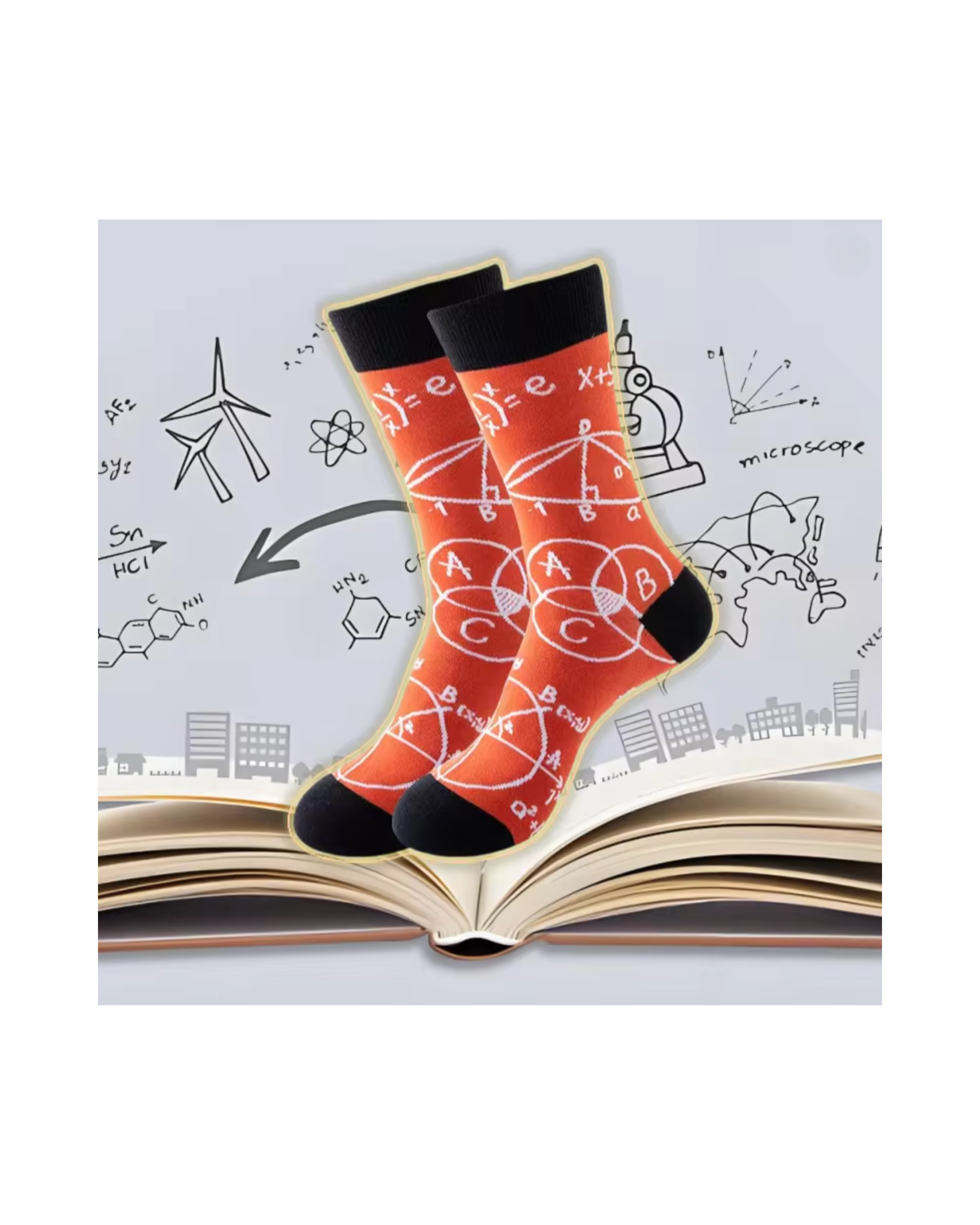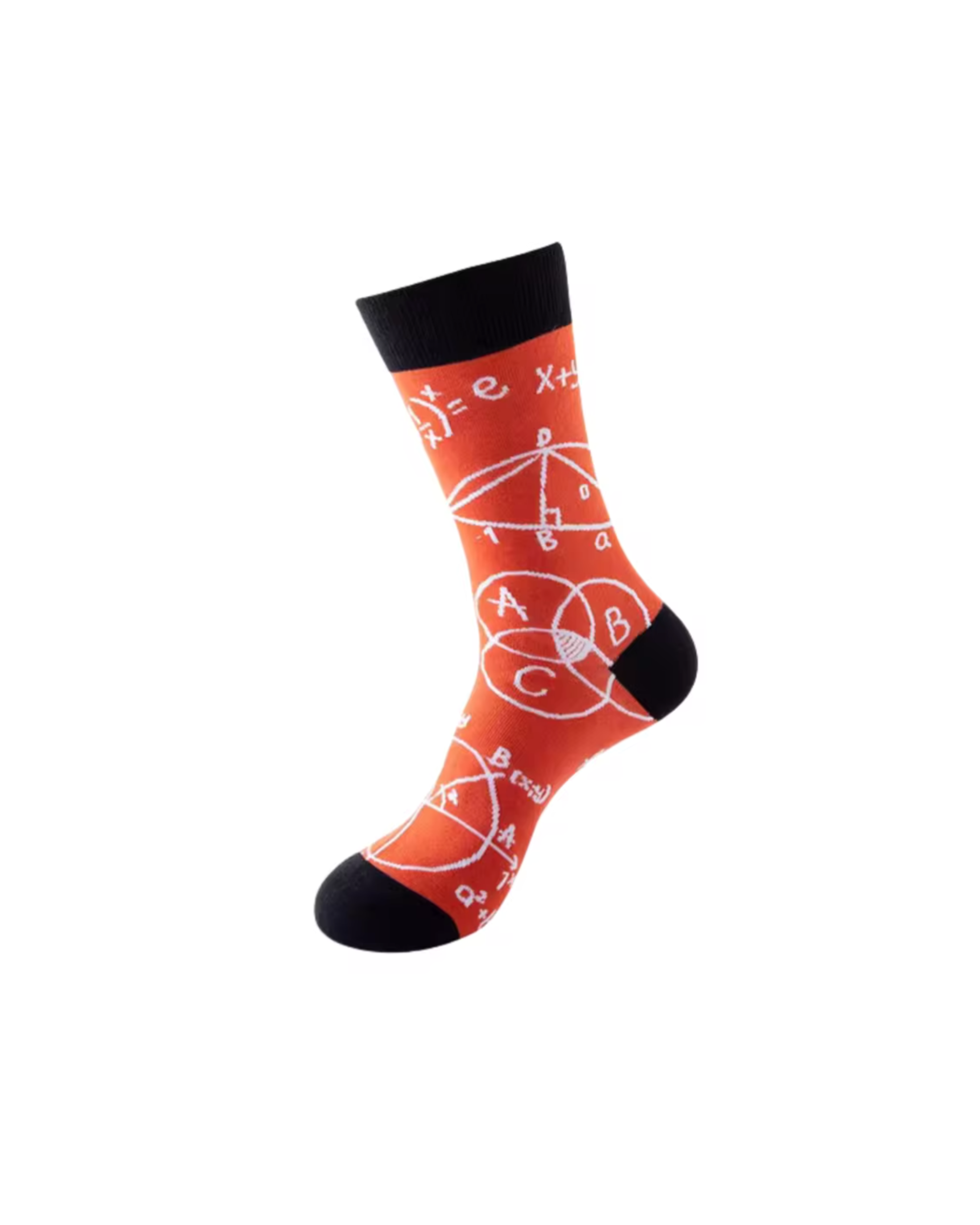 Crew socks featuring geometric line and formula-inspired designs for everyday wear.