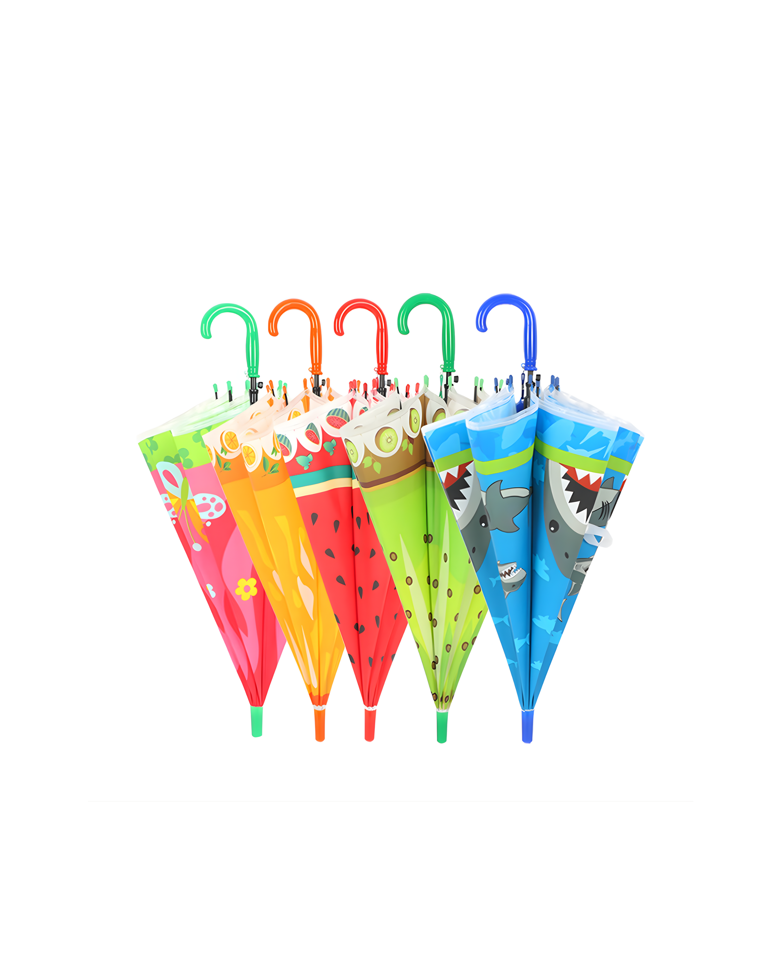 Colorful kids umbrella featuring playful cartoon and fruit-inspired designs.