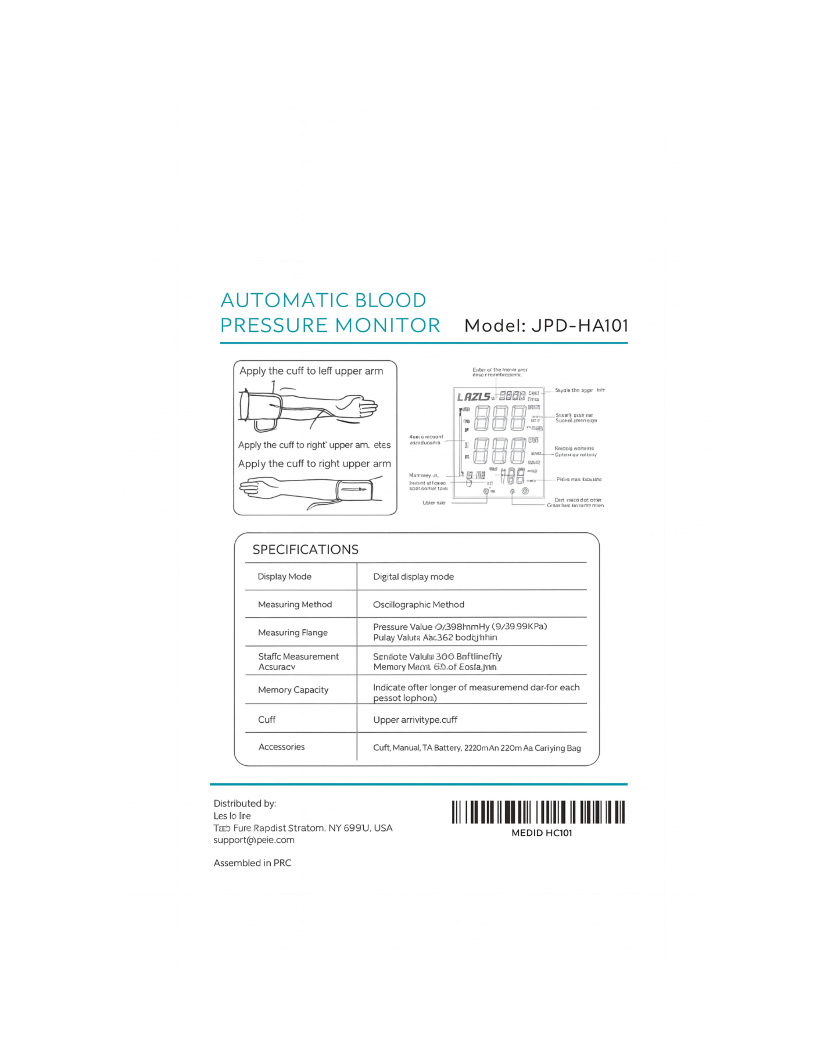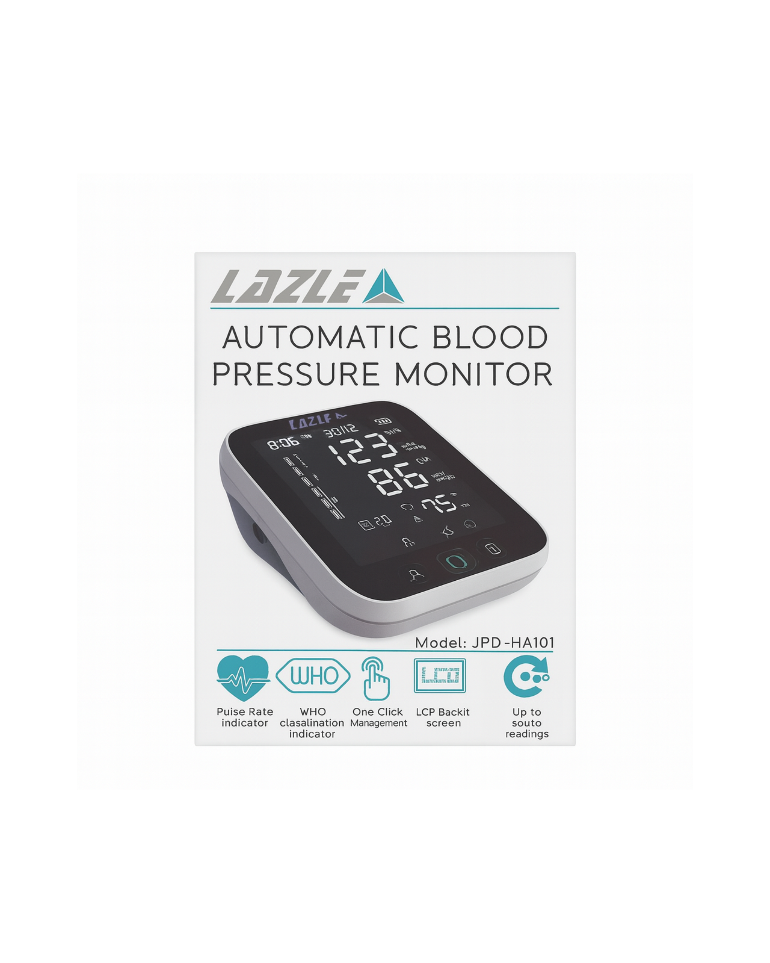The Lazle JPD-HA101 Automatic Blood Pressure Monitor delivers fast, accurate, and easy at-home monitoring for your blood pressure and pulse rate. Designed with an extra-large LCD backlit display, this unit makes readings clearer and more visible even for seniors or users with low vision.