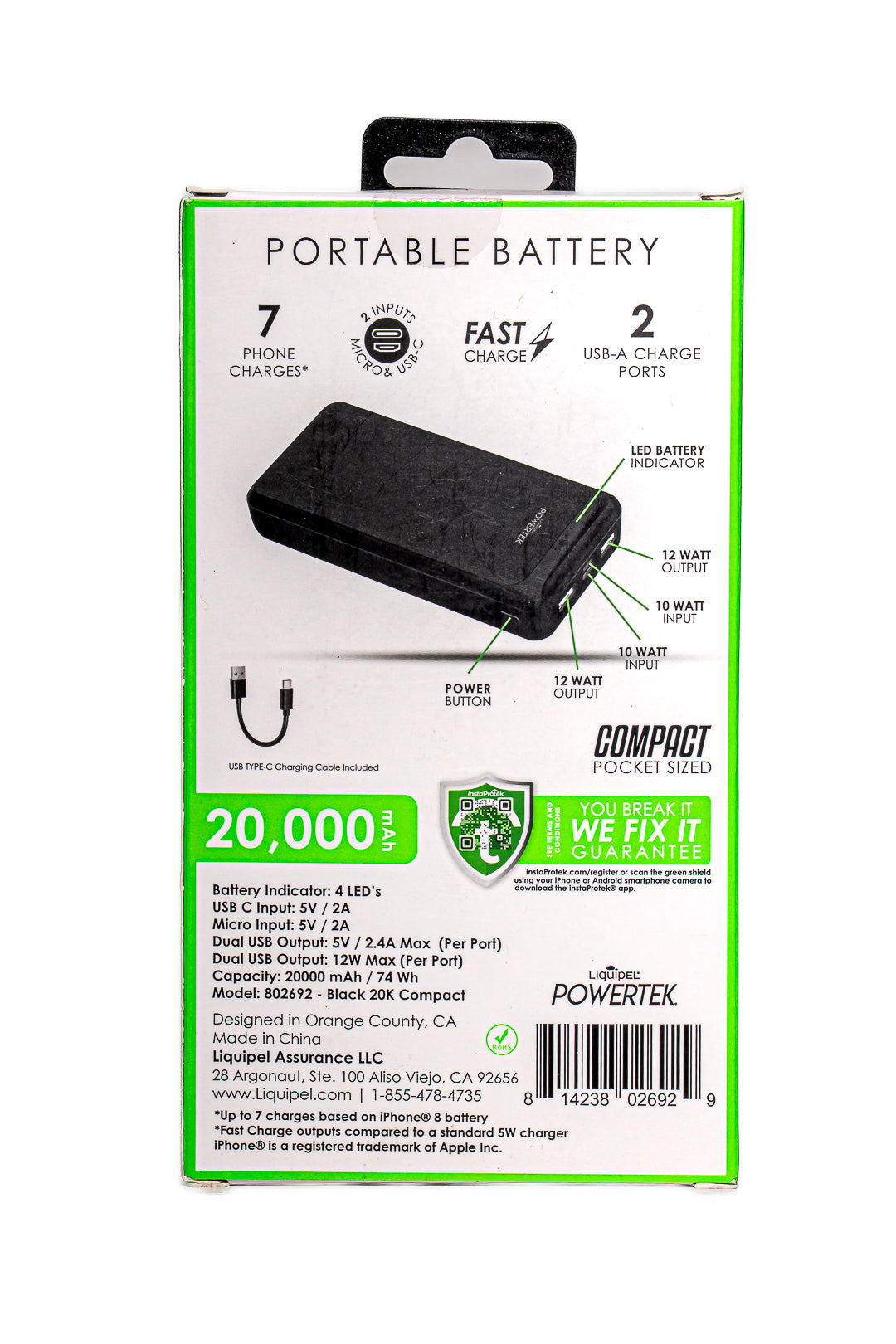 Liquipel Powertek Portable Battery – 20,000 mAh Fast Charge Power Bank