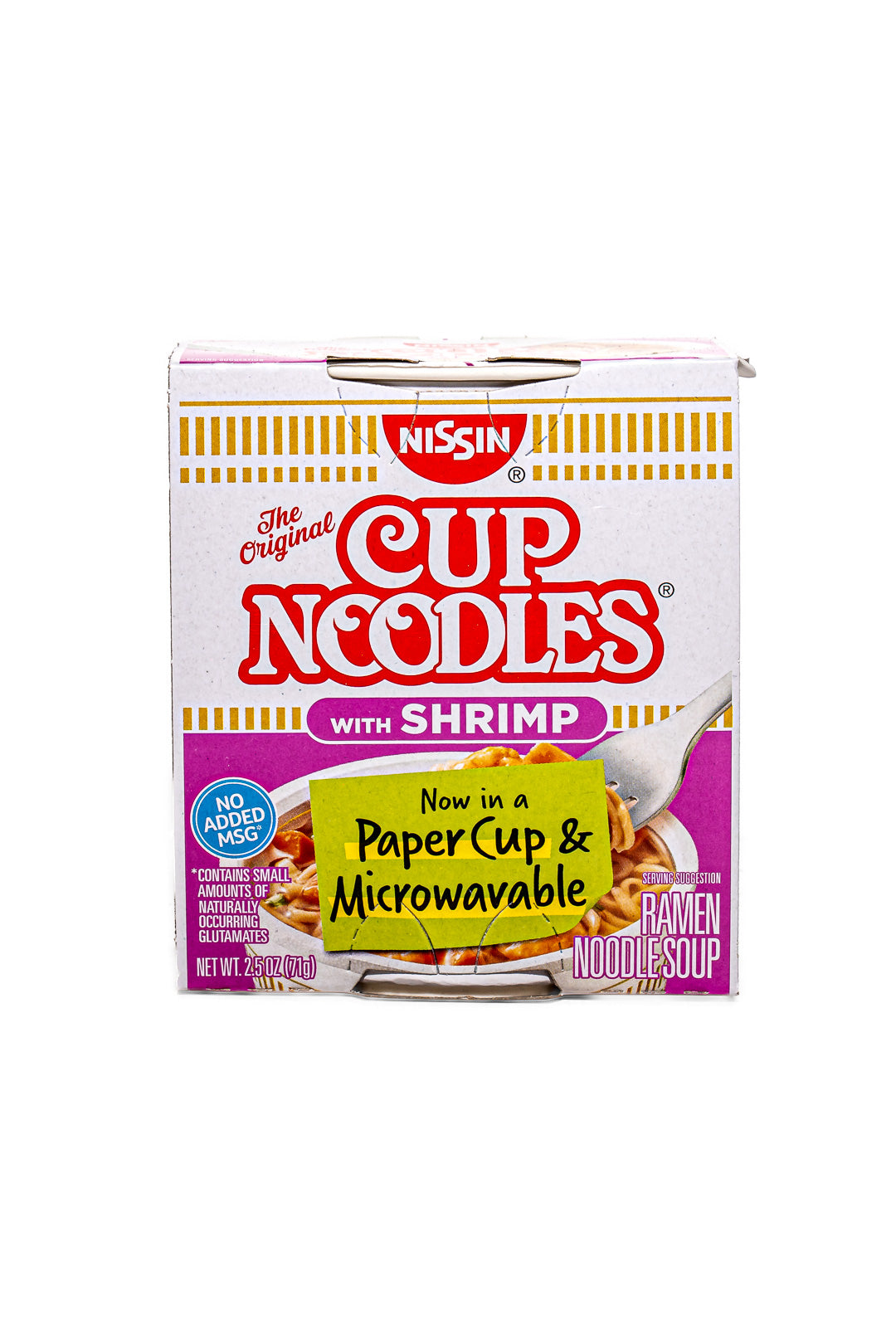 The original instant ramen noodle soup, now in a microwavable paper cup with real shrimp flavor.