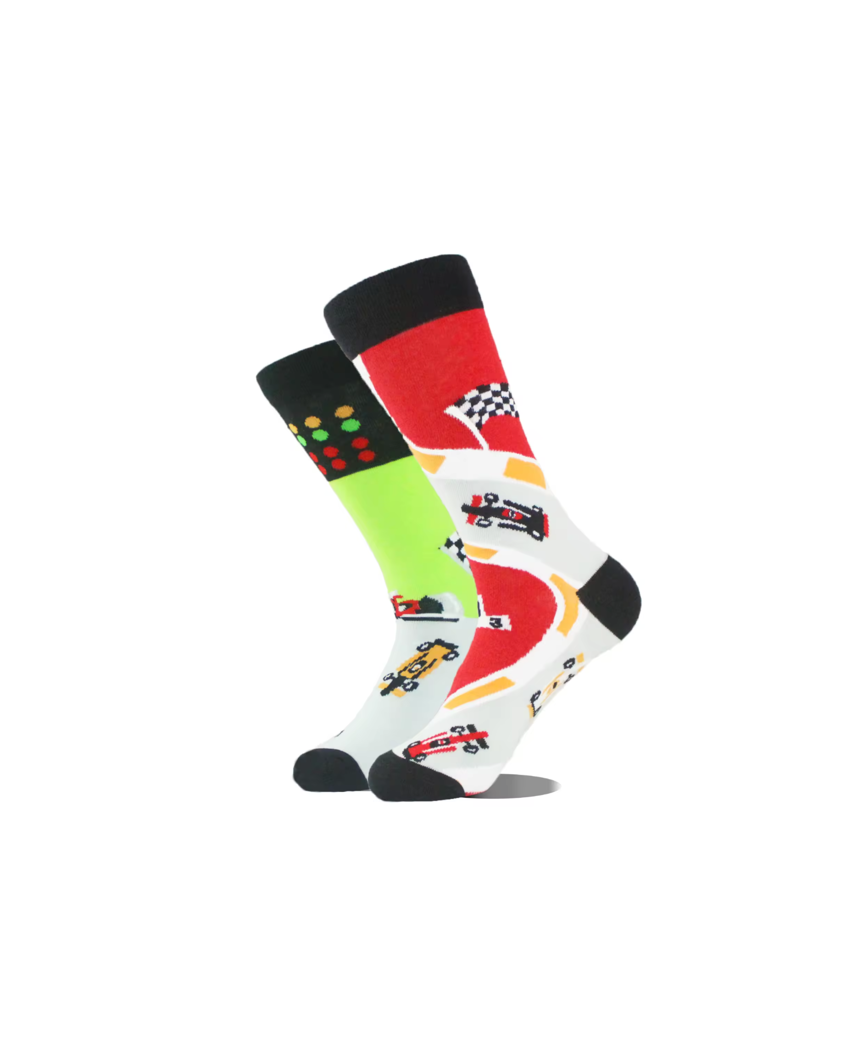 This pair of crew-length socks features fun and playful novelty designs available in multiple styles, including food themes, smiley patterns, racing graphics, and bold illustrations. Each listing is sold as one pair, with the design selected by the customer based on availability.