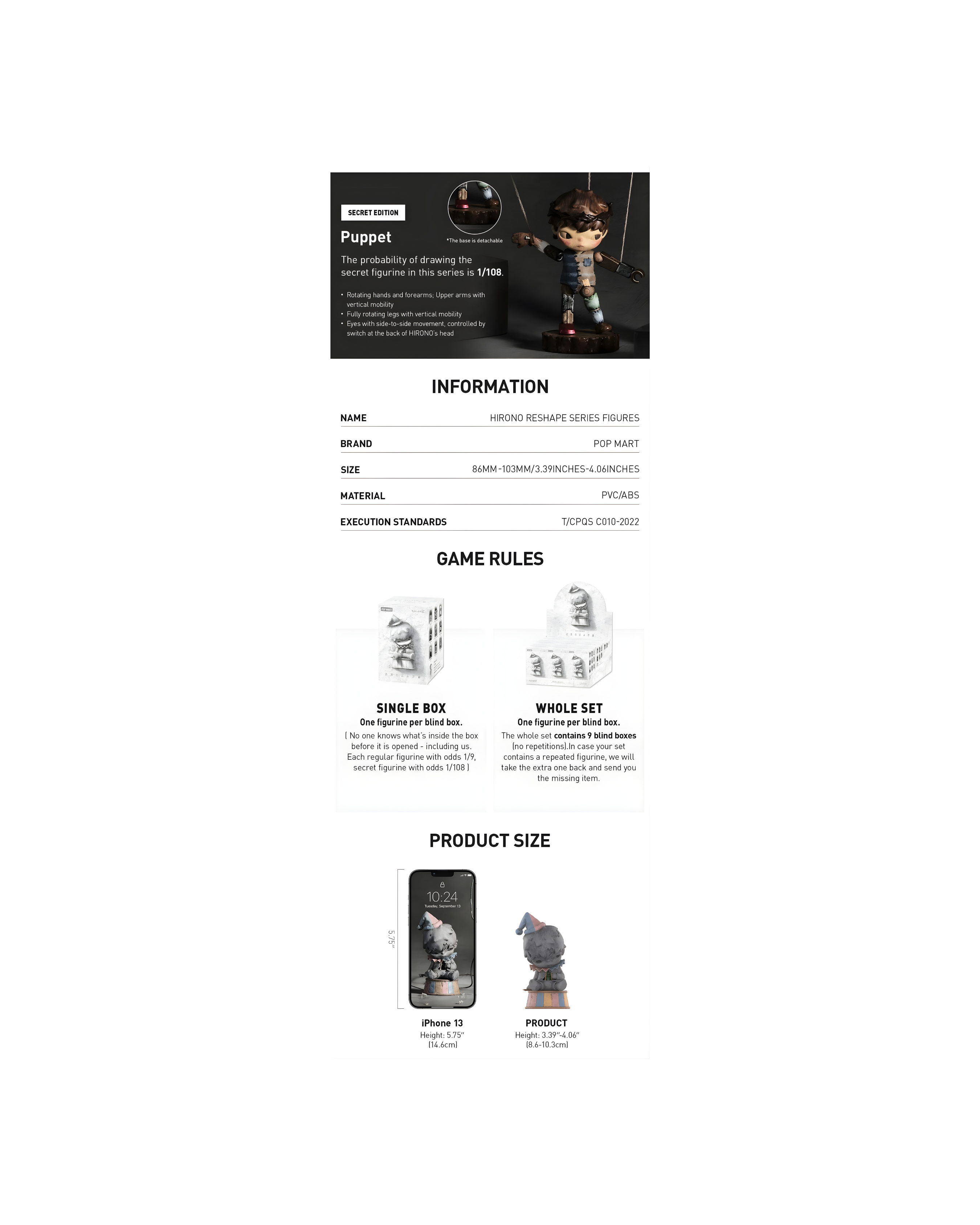 Discover the unique charm of the POP MART Hirono Reshape Series, a premium line of officially licensed collectible figures. Each blind box contains one random Hirono character, redesigned under the Reshape concept — featuring new poses, refined styling, and beautifully sculpted details.