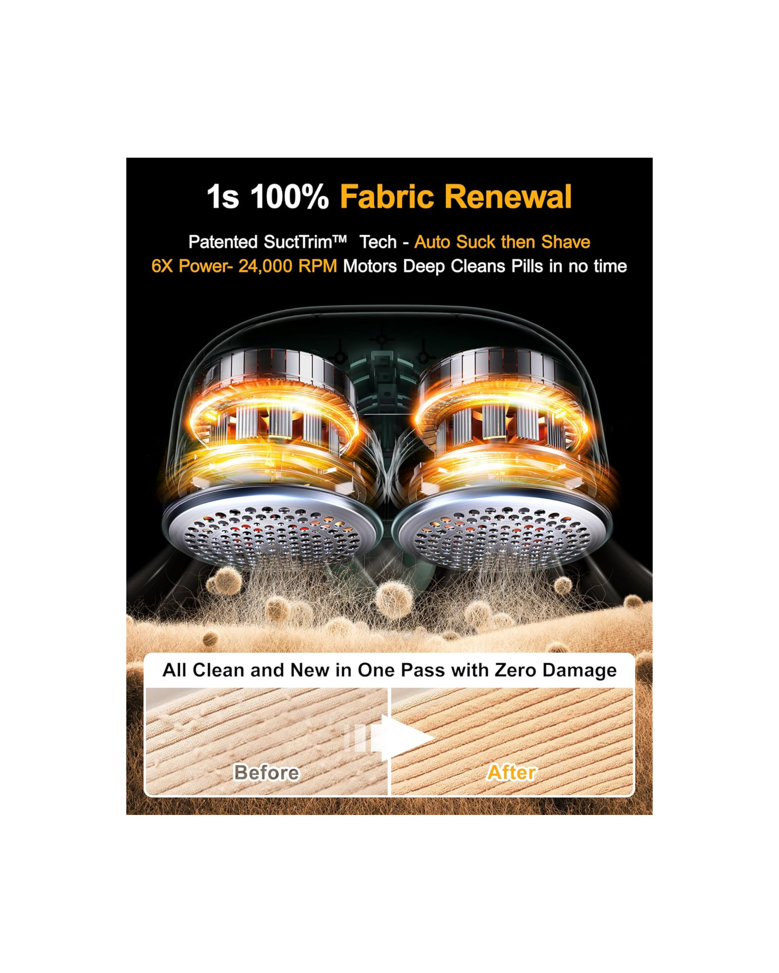 Featuring dual stainless steel blades and a wide shaving surface, it efficiently removes lint, fuzz, and pilling from sweaters, coats, furniture, and more. The high-torque motor and suction lint collector ensure powerful yet gentle performance, preventing fabric damage.
