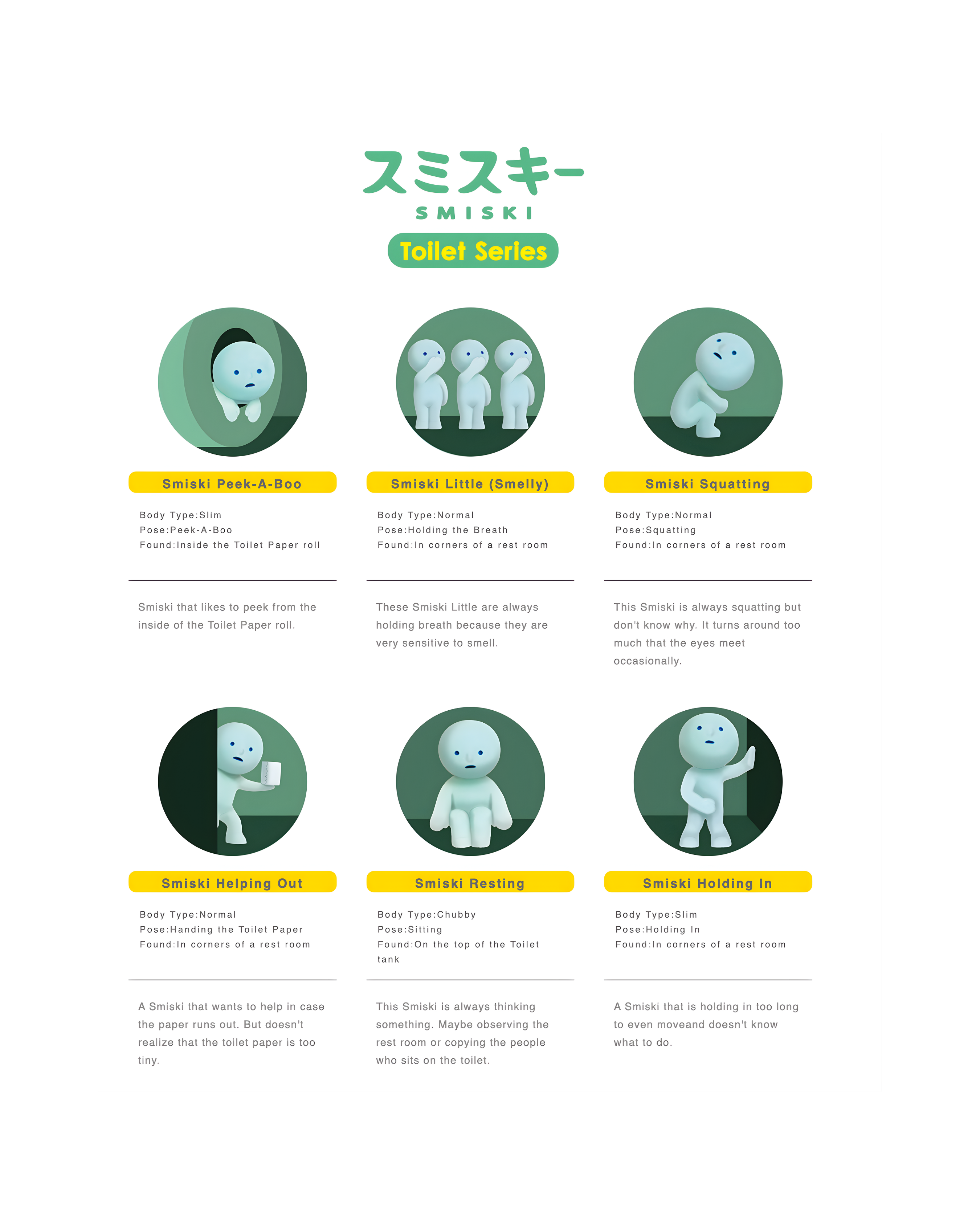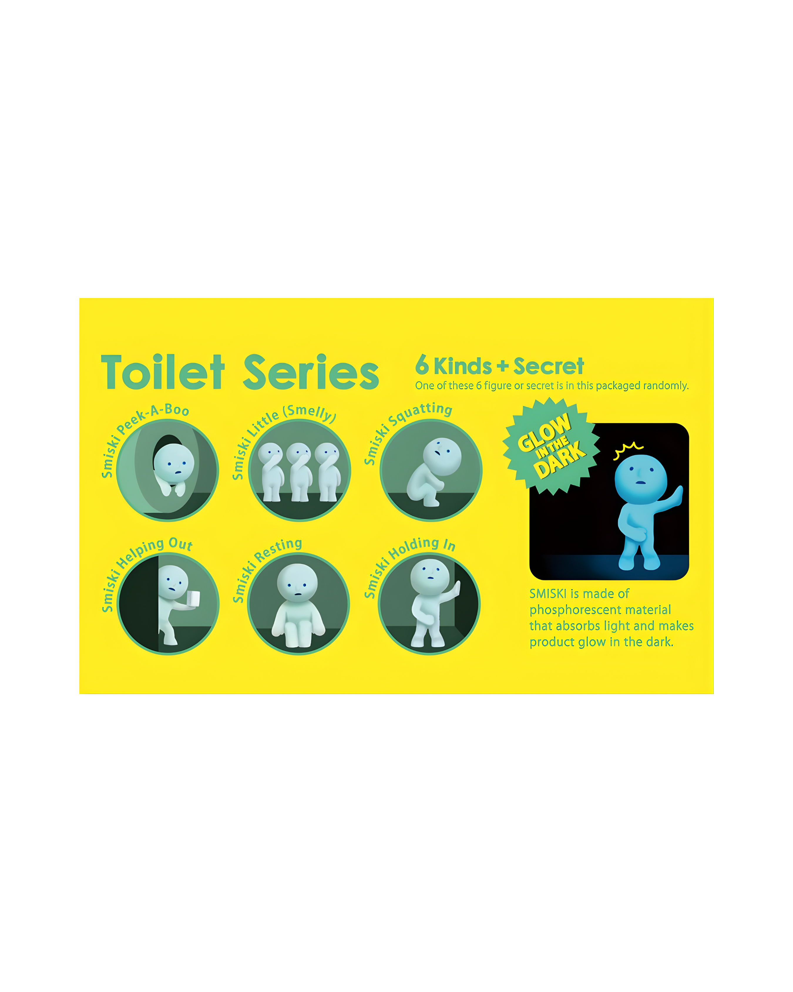 Add humor to your collection with the quirky Smiski Toilet Series. Each blind box holds a glow-in-the-dark Smiski figure depicting funny and unexpected bathroom-related poses. A perfect conversation starter and a fun collectible for Smiski fans.