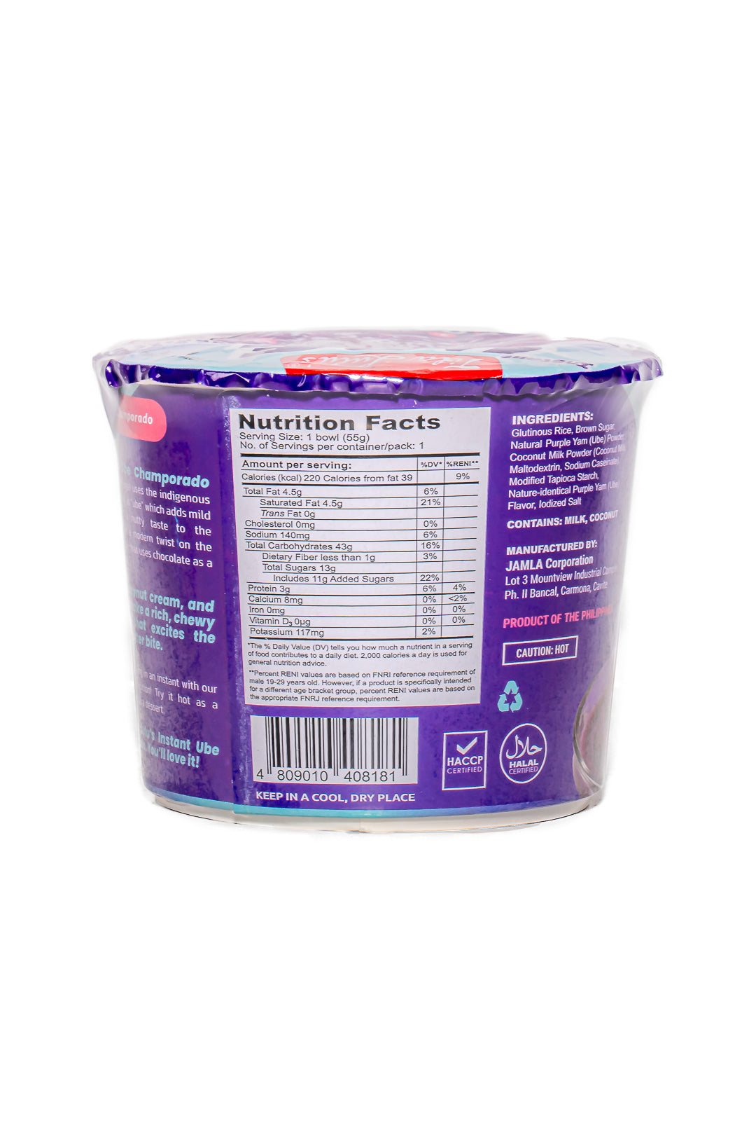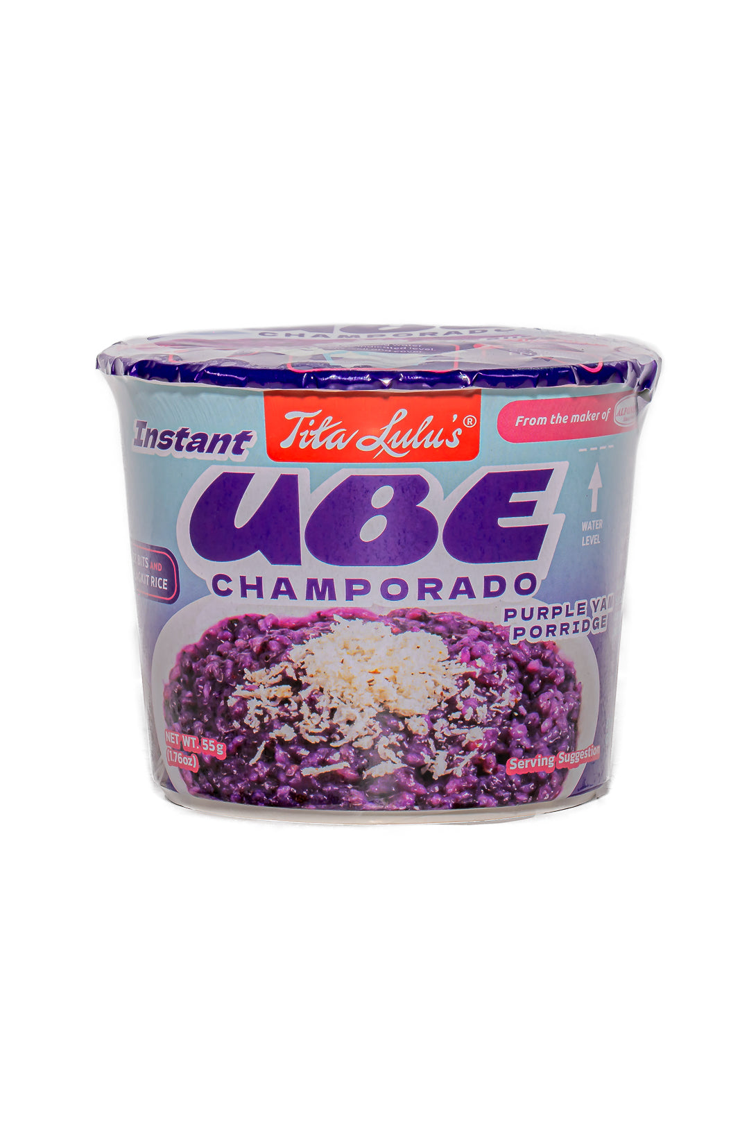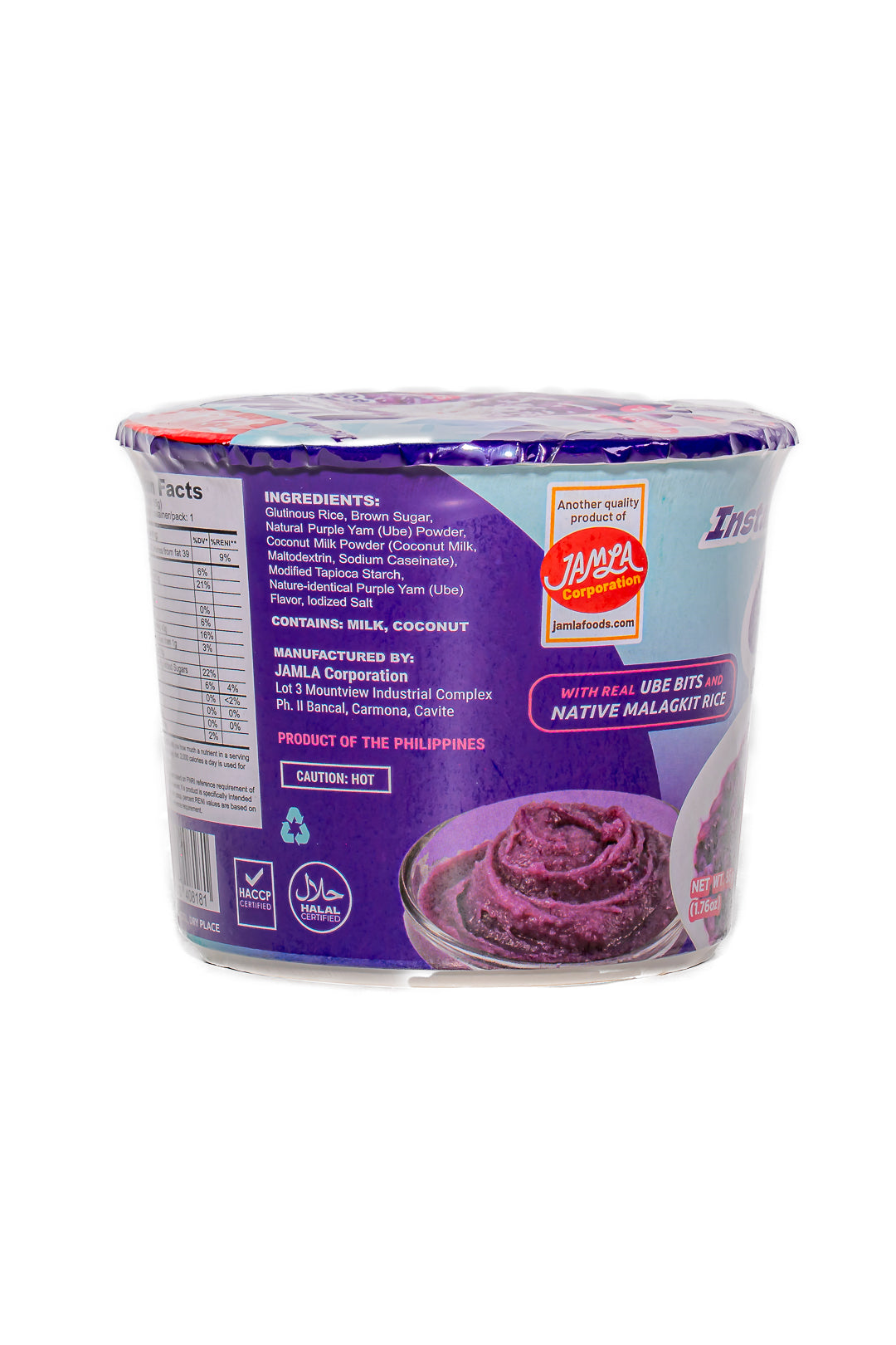 Instant purple yam (ube) rice porridge mix in a convenient cup. Just add hot water and enjoy.