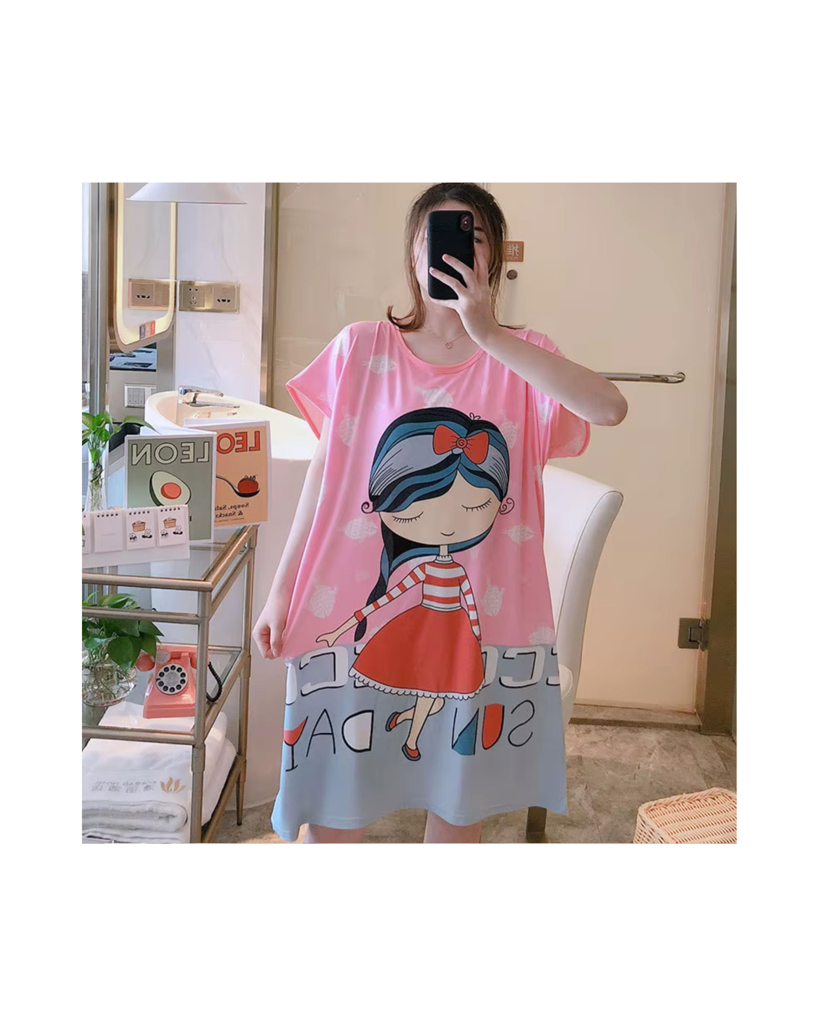 Soft, comfy cartoon loungewear perfect for relaxing at home or sleeping in style.